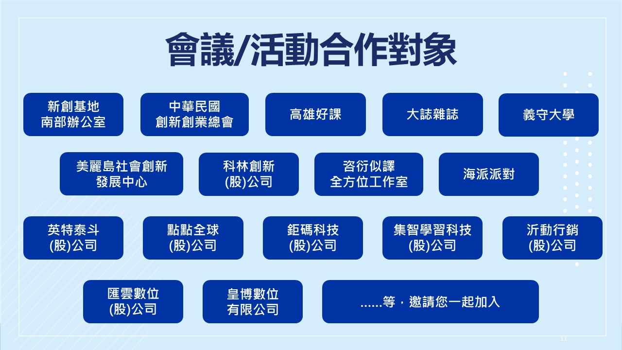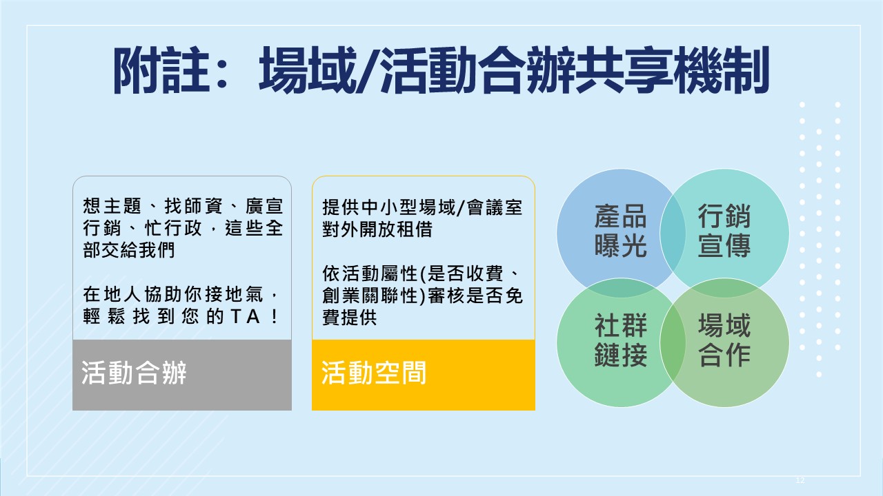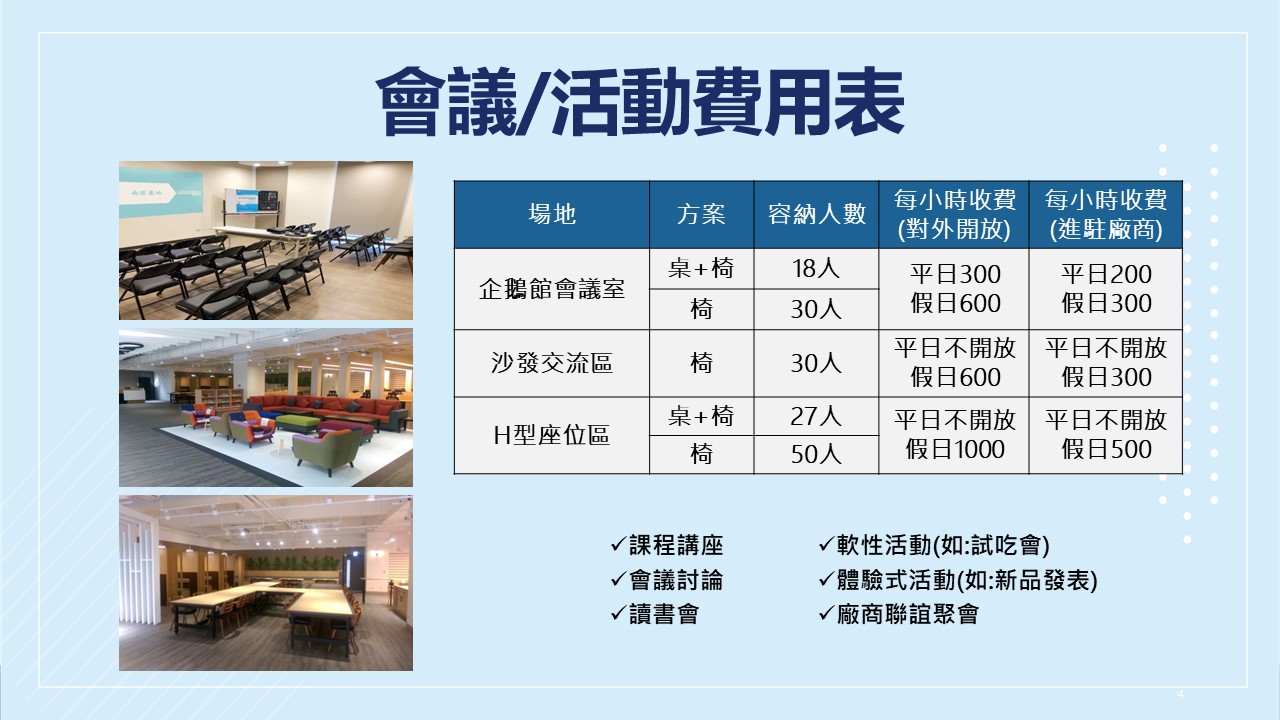 可申請至現場參觀場地,智慧高軟亦提供各式免費/付費創業相關活動,