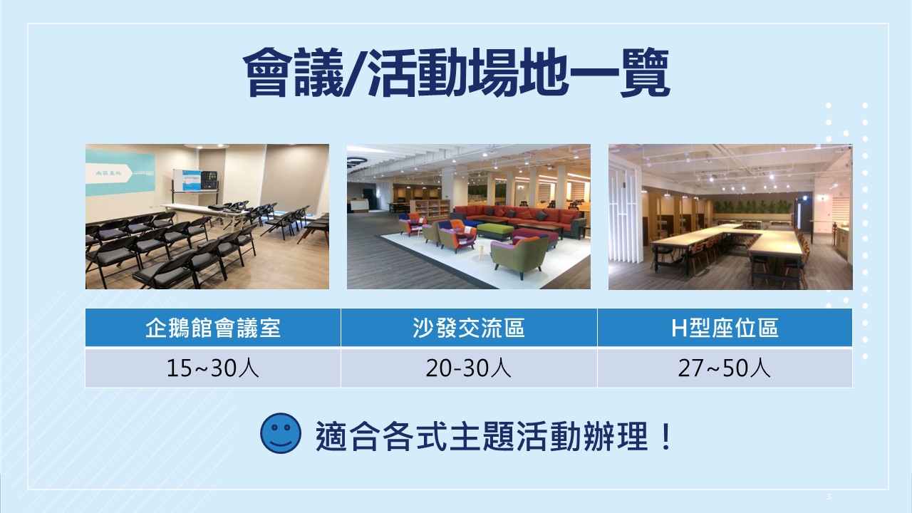 ★場地類型多樣,適合各式10-50人活動辦理