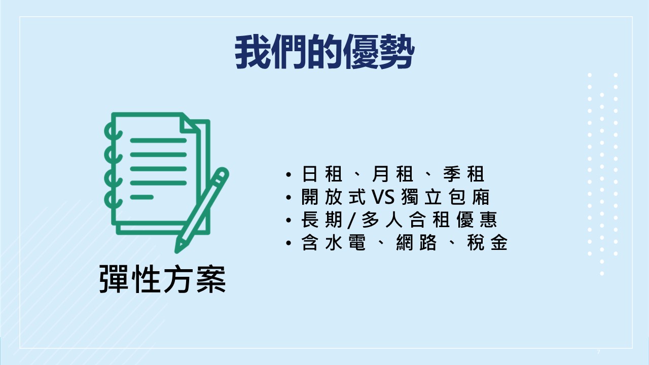 🔵 可以月、季、年等方式租賃辦公室,依會員需求選擇座位
