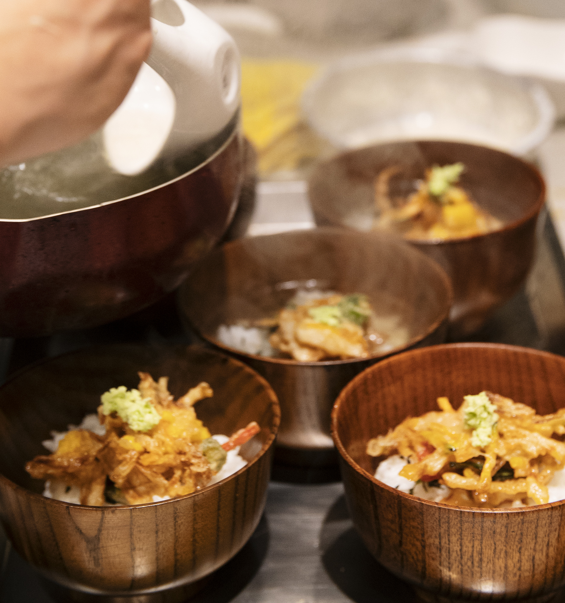 學作烤鯖魚、山葵小章魚、芝麻豆腐、茶泡飯