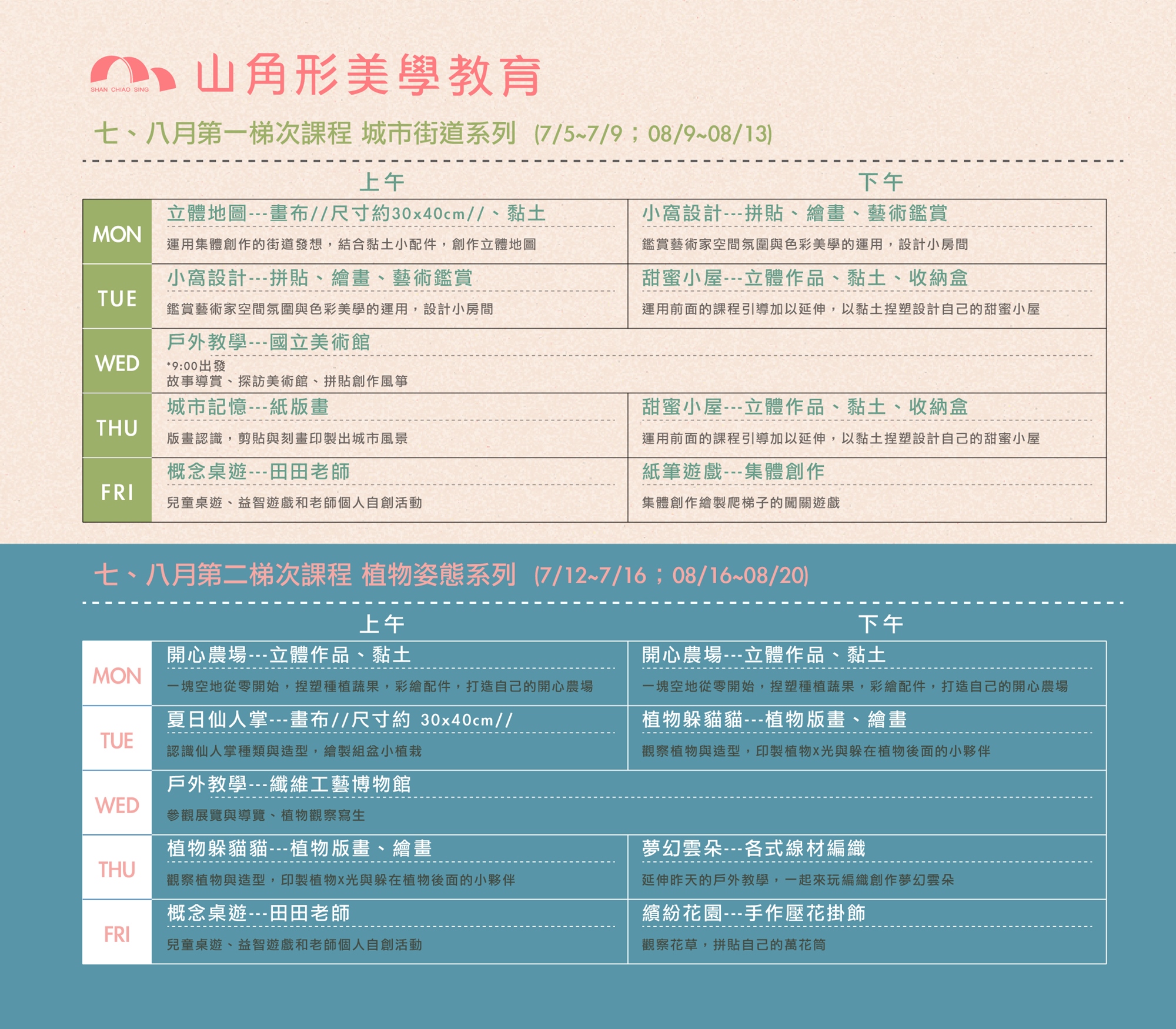 讓暑假藝術體驗更精彩有趣,多一點觀察、多一點體驗,增加對生活周遭的感受力,用藝術玩創意認識自我,創造學習動機。