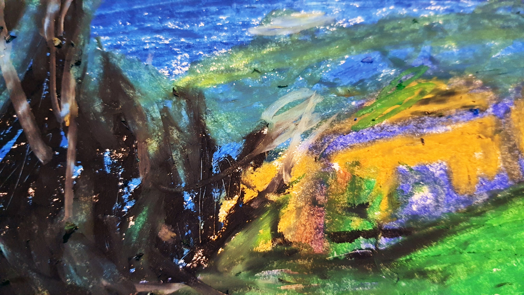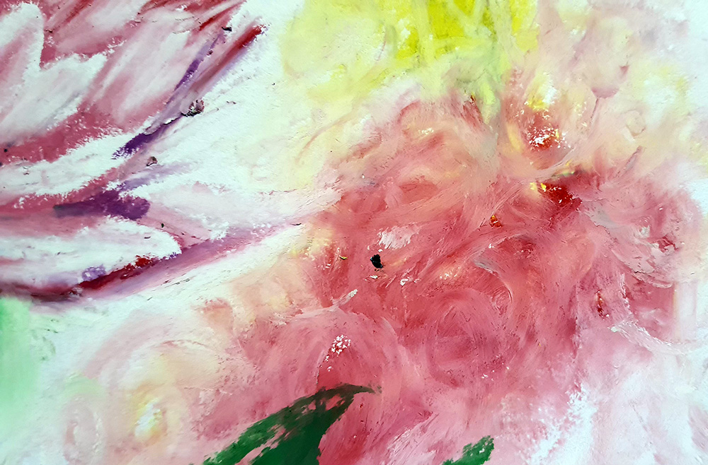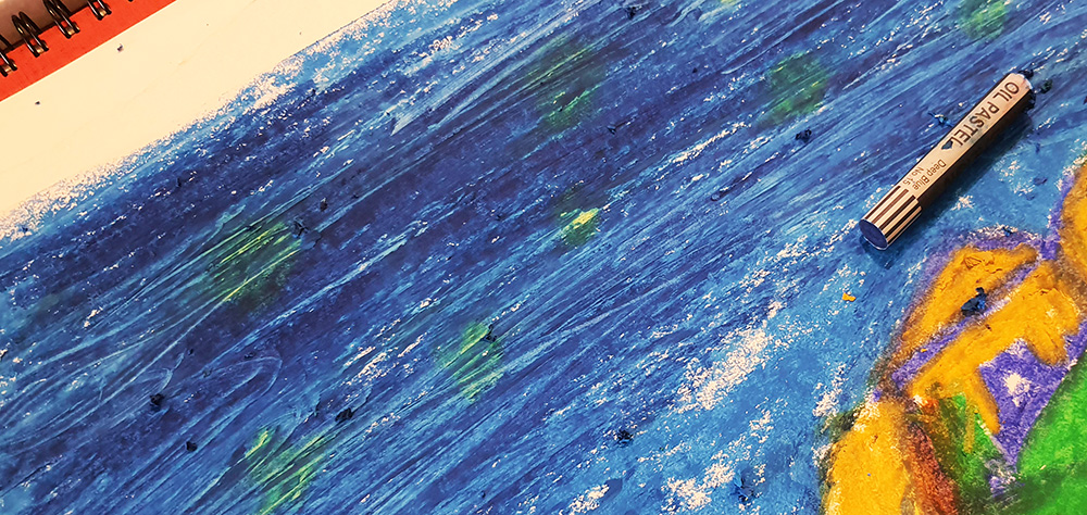 粉臘筆oil pastel 也有稱為「油性粉彩」,質地會比油蠟筆較軟,適合訓練混合顏色的畫材,繪畫時可輕、可重、可重疊混色、較有變化,運用範圍可以相當的廣泛,從成人的繪畫創作到小朋友隨意塗鴉都合適。可以表現濃豔與淡雅的色彩,高至低明度的豐富色階,可以表現粗獷與細膩的質感,藉由厚塗與薄塗的交互使用以及顏色之間的交疊,可以經營出非常豐富的畫面層次。也可將粉蠟筆與油畫,或水彩顏料複合使用,創作出具有特別風格的作品。
