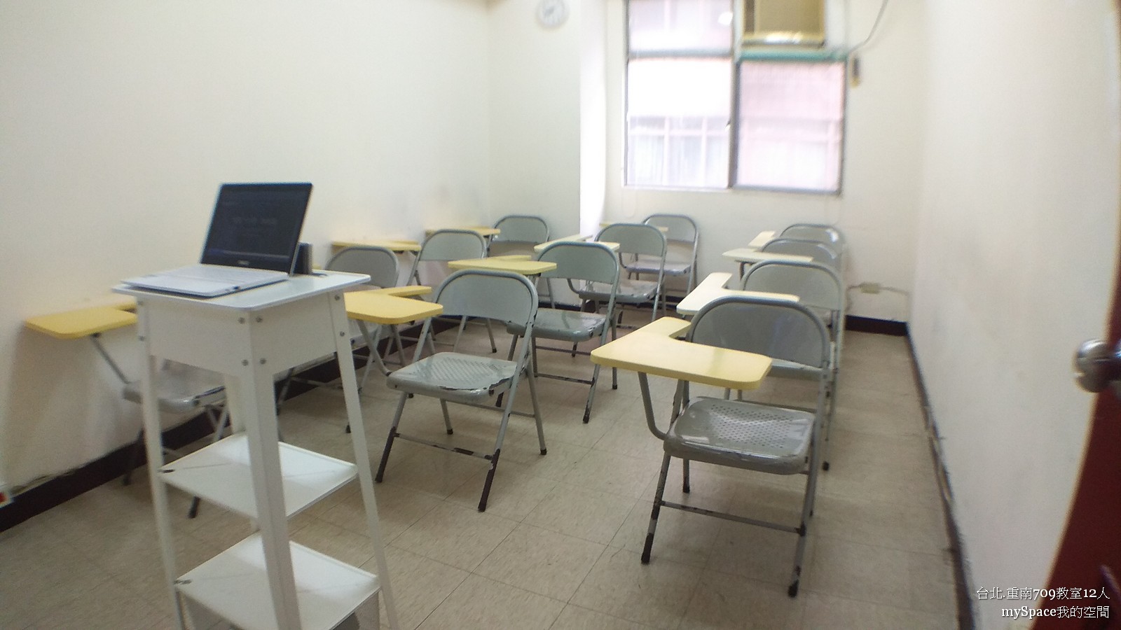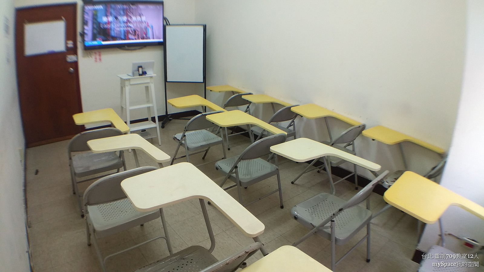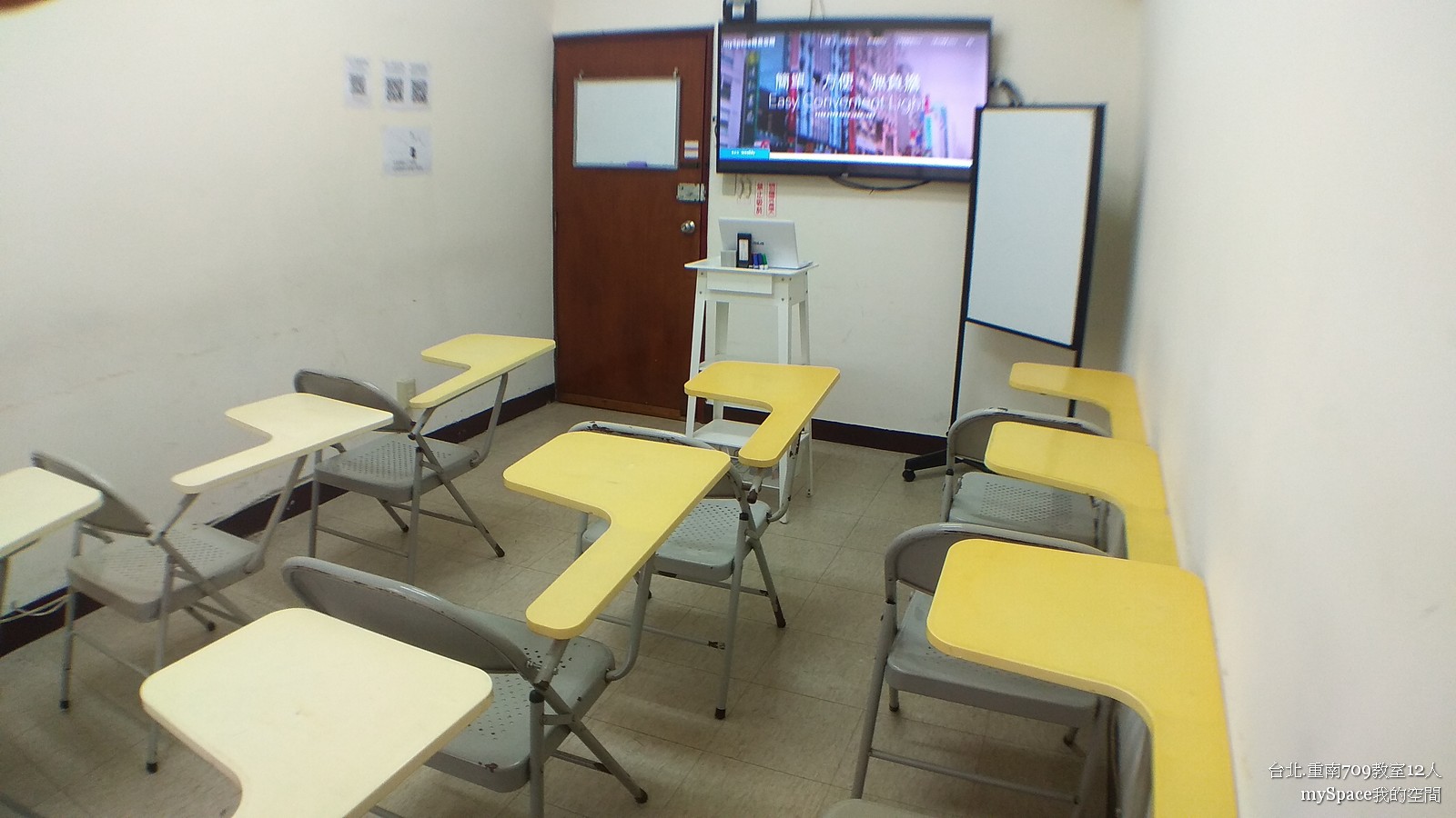 重南709教室,位於重慶南路三民書局旁,距離台北火車站與捷運站走路只需8分鐘,是交通方便的「自助式視聽小型教室」。採用55吋液晶電視作為投影設備,可用 HDMI、VGA、Chromecast 電視棒等三種方式連接電腦,適合投放簡報、影片、照片、音樂。12 張「折疊式」大學椅,最多可以容納 12 人。「可彈性運用」的桌椅排列設計,可隨人數、使用需求進行各種空間模式變換。適合小型教育訓練課程、讀書會、分享會與會議。附有 2 面 60*90cm 小型白板、獨立空調與小型演講台。鄰近眾多美食的城中市場與中山堂等停車場,是您舉辦活動的最佳選擇。709教室尺寸 2.8M * 4.7M=4坪