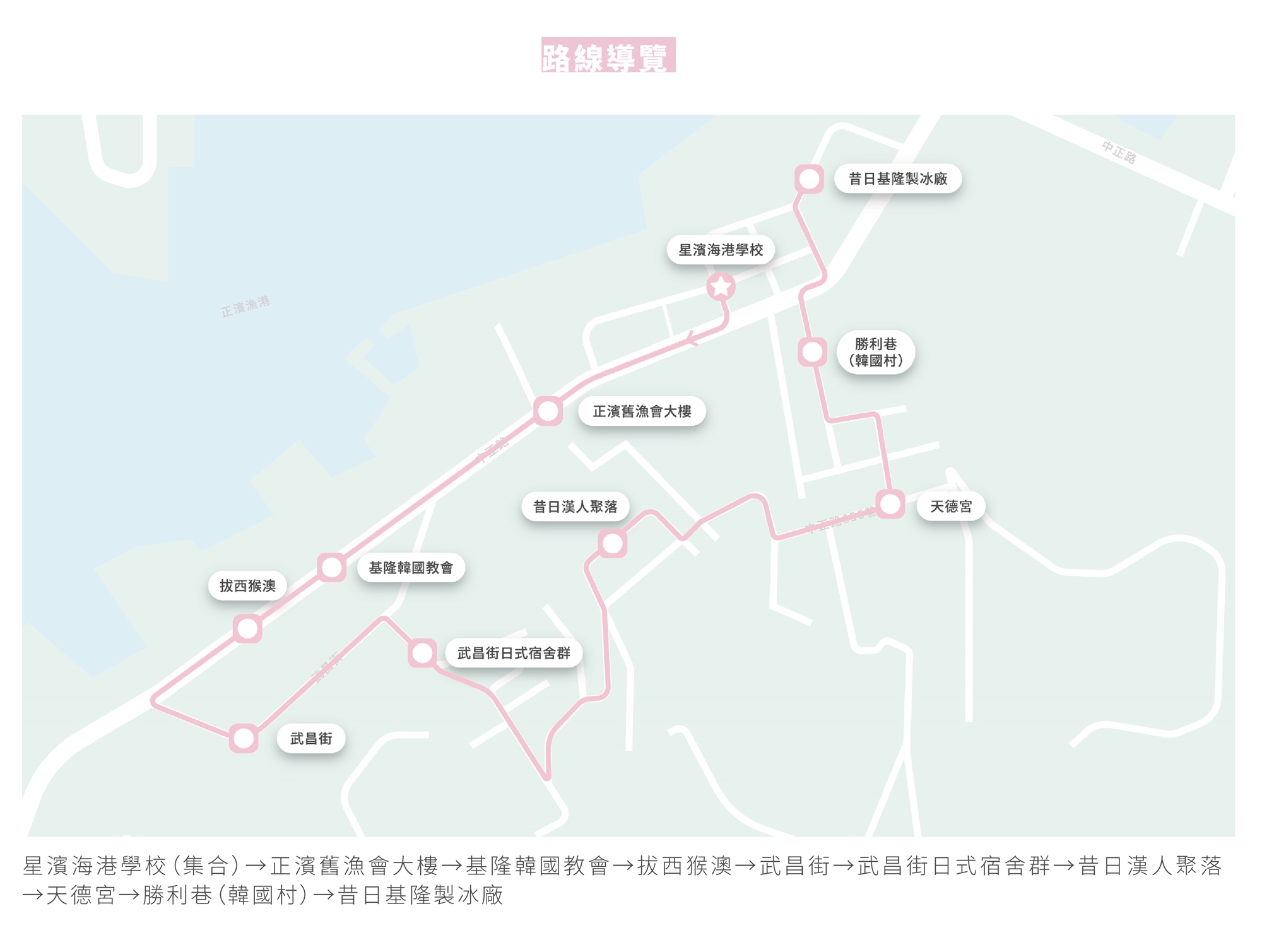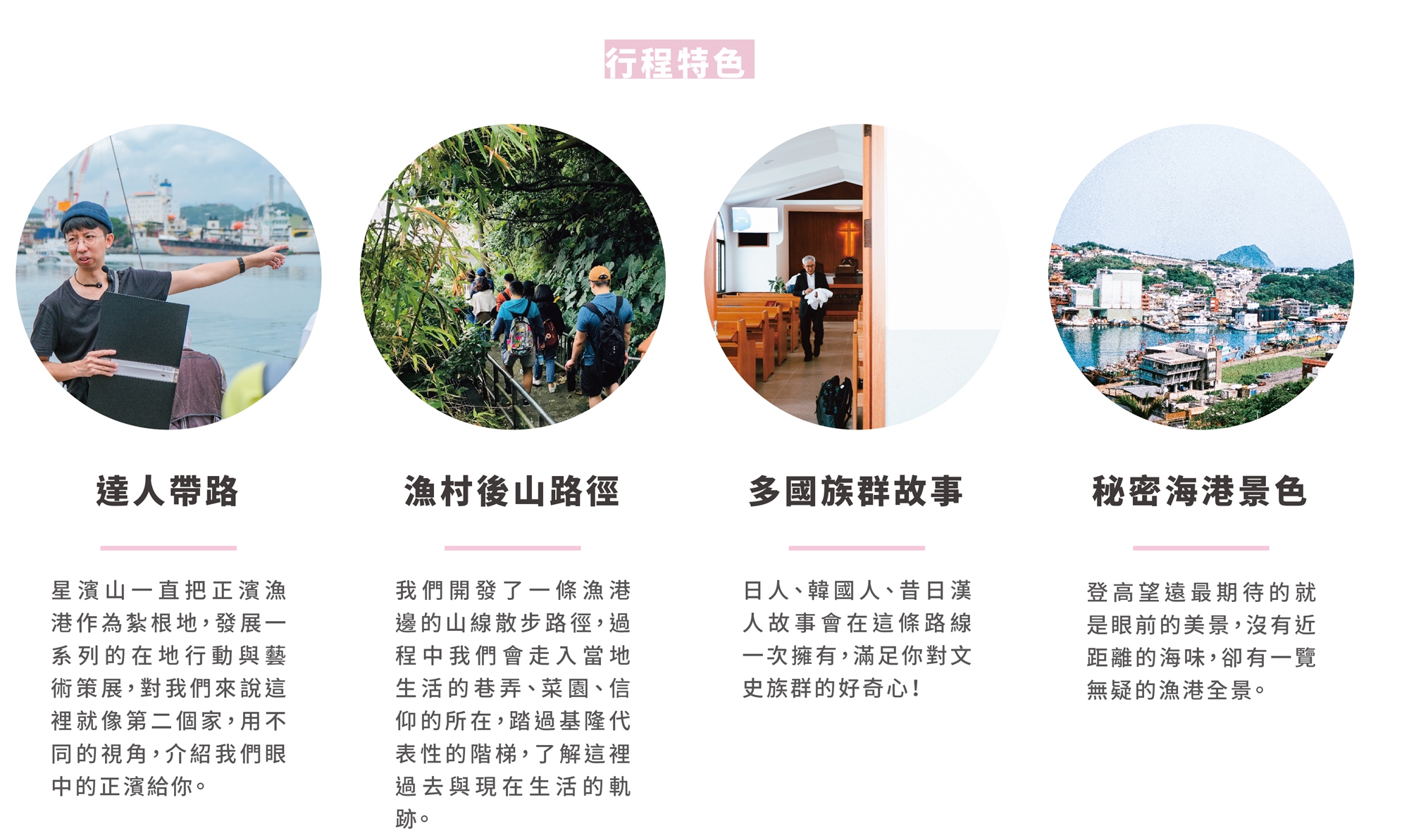 正濱漁港的港邊,埋藏了許多殖民國留下的建築,以及逐漸被遺忘的故事。這次我們不走港邊,選擇往山上走去,過去正濱因日本殖民時期,戰後留下些許的韓國人們,定居於此生活,現在仍可在基隆韓國教會、勝利巷市場(韓國村)探尋他們的蹤跡。你知道過去正濱漁港的繁榮過往嗎 ? 因此除了韓國人、日本人,昔日的漢人也在此生根和工作,同時也發展了他們的信仰。不同族群融合在一起,會激發甚麼新滋味呢 ?邀請你一同來品嚐山中故事 !