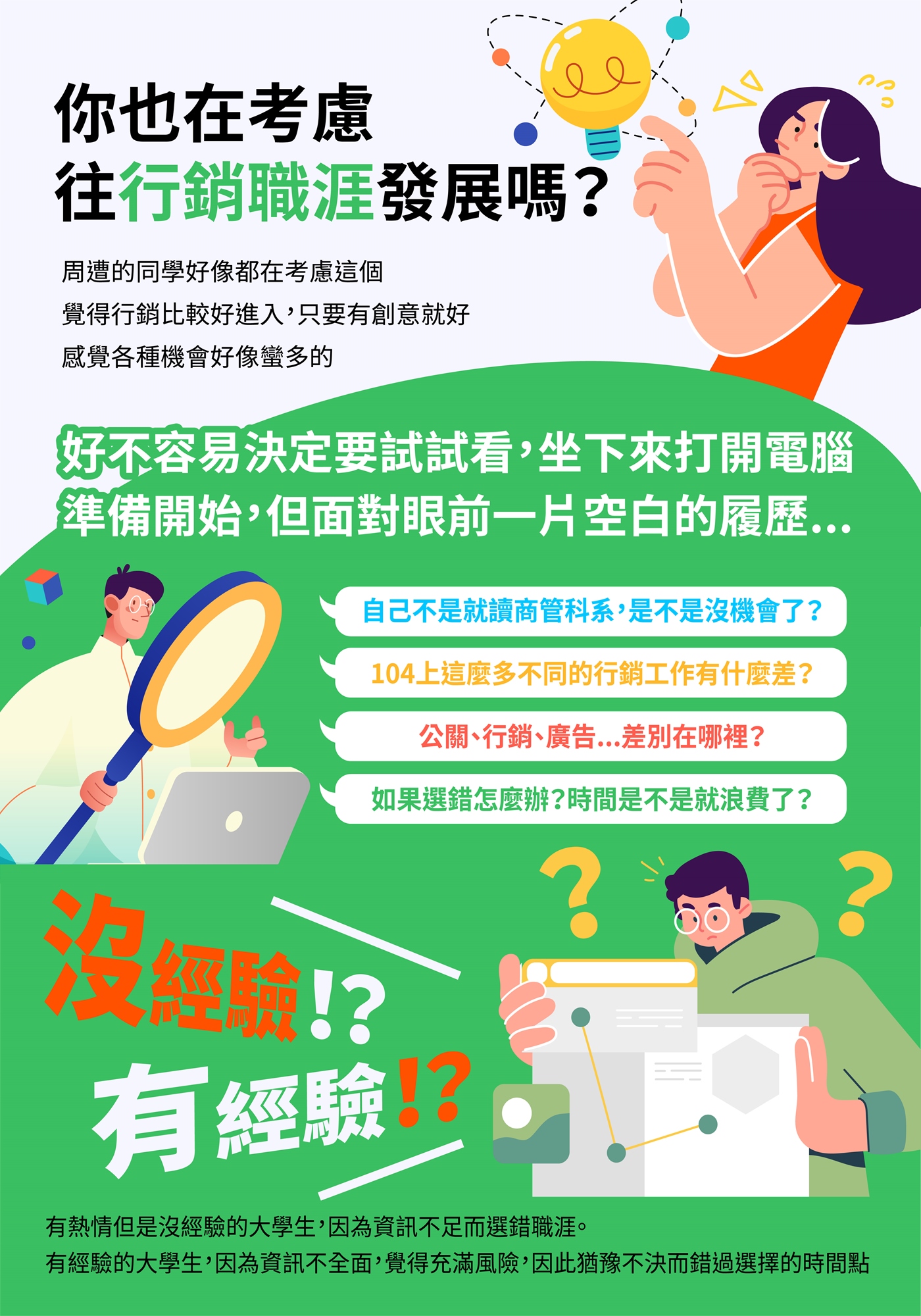 - 我還不確定自己的職涯發展方向,但是好像對於行銷有好奇,怎麼了解更多?