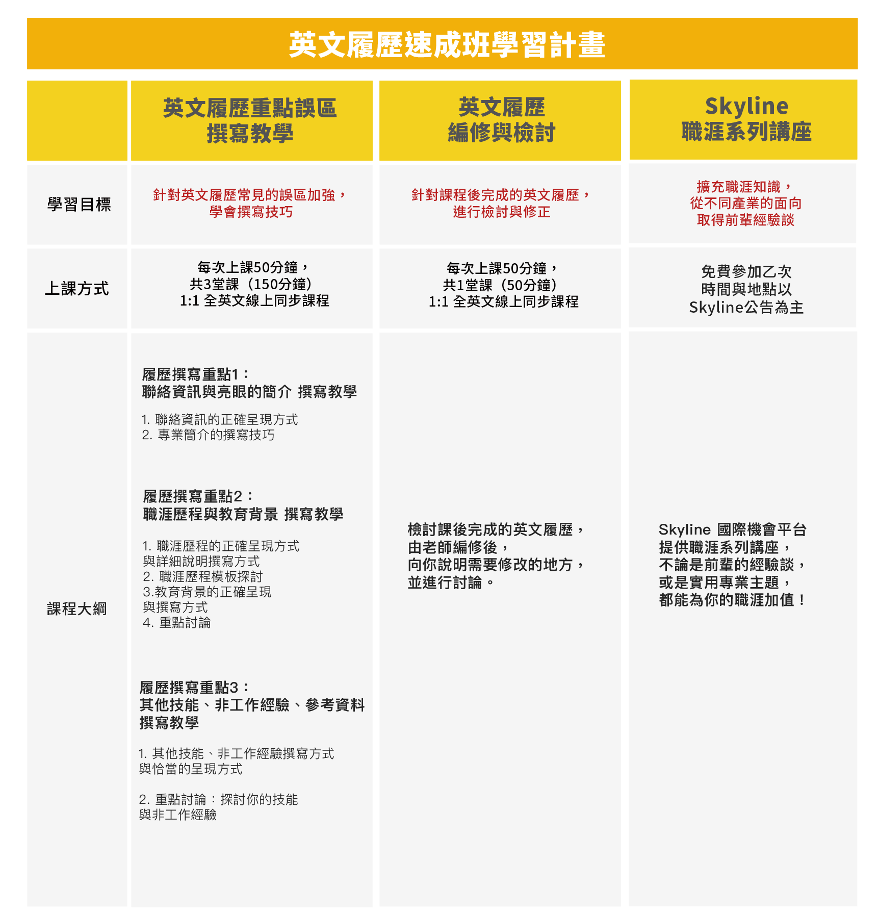 Winning+國際人才培訓 和 Skyline 國際機會平台 攜手打造:200分鐘英文履歷撰寫速成班,