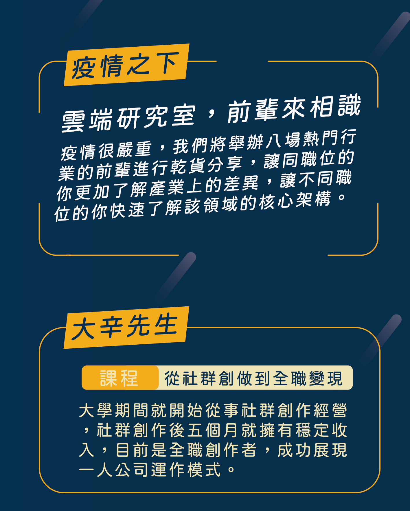 A3:當然可以!已完成的課程將將有影片檔提供給您觀看,其餘課程一樣準時加入直播即可。不論任何時間加入都可以完整學習並申請獎學金喔 :)