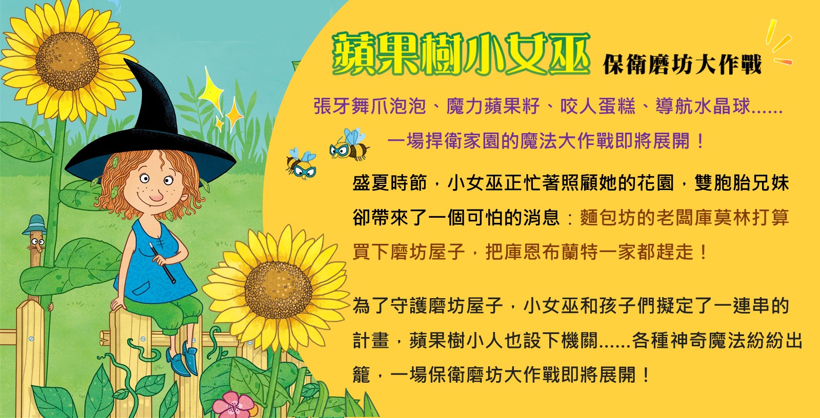 - 補充說明:報名後可獲得課程觀看連結,並可收到《蘋果樹小女巫4 保衛磨坊大作戰》書籍一本。