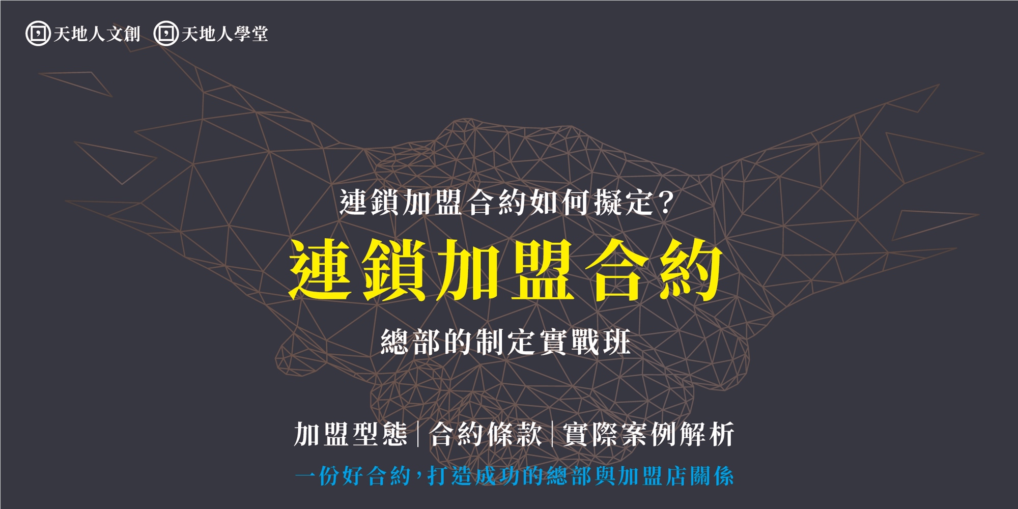 一個連鎖加盟體系的誕生有想像中那麼容易嗎?除了要兼顧產品、形象、行銷三個面向的發展外,還要有完善的加盟合約,規範的建立可以成為保障雙方權益的基礎,同時妥善評估風險管理,完善未來發展。有鑑於此,天地人學堂特地規劃出此課程,「連鎖加盟合約如何擬定?總部的連鎖加盟合約制定實戰班| 從加盟型態、合約條款 到 實際案例解析」,邀請業師具備多年教學經驗,並曾任連鎖品牌總經理,透過業師的實戰經驗融入課程之中,由淺入深的帶領學員瞭解連鎖加盟合約四大核心技能:(1)連鎖加盟角色定位;(2)從無到有撰寫加盟合約;(3)不同型態的加盟權益;(4)加盟合約實例分析,透過這門課程,協助你瞭解從基礎加盟觀念到合約撰寫實戰。