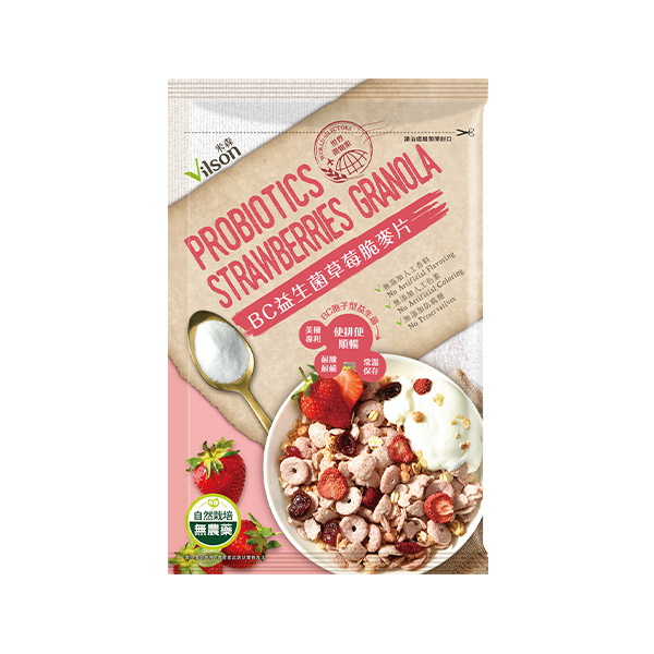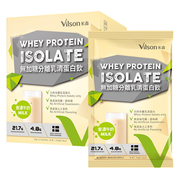 米森vilson無加糖分離乳清蛋白飲香濃牛奶口味2盒;以及BC益生箘草莓脆麥片隨手包1包