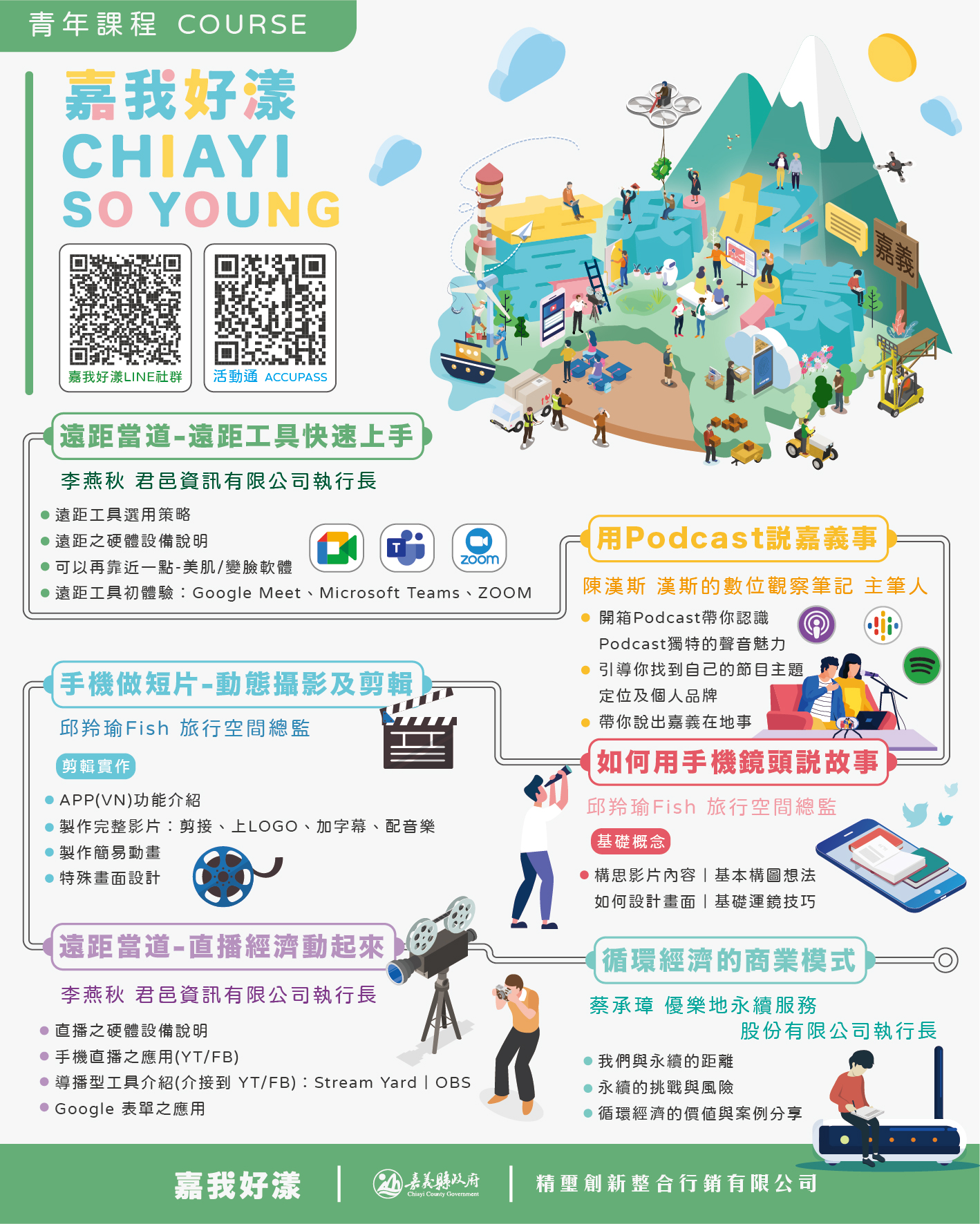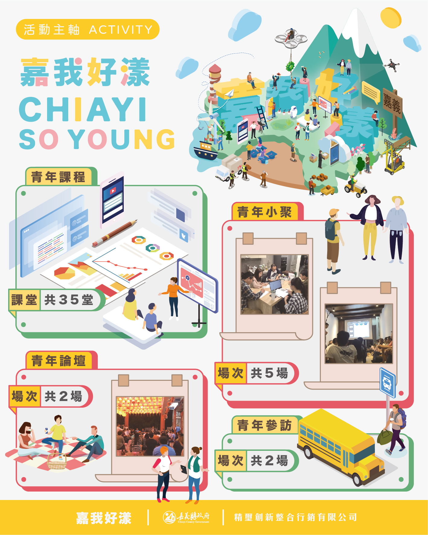 2021【嘉我好漾】So Young青年培力,由嘉義縣政府勞工暨青年發展處主辦,為協助嘉義縣青年或是有創業想法的創業家,透過多面向的課程、參訪、論壇及小聚等共學方式,探索發展自我能力、創新設計思考、了解產業趨勢及掌握時代脈絡,同時讓So Young的你們互相經驗、資源分享及交流,協力打造嘉義縣青年好漾故事。