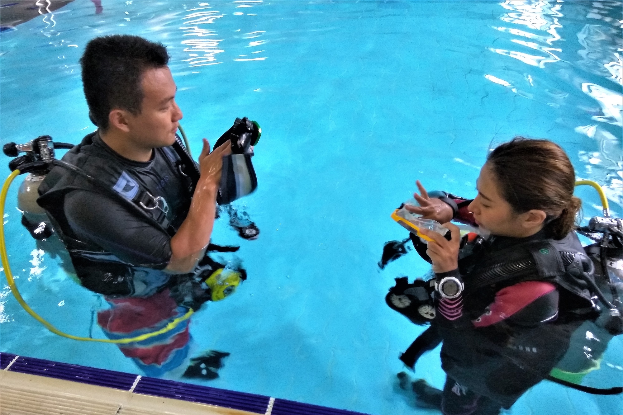 1. [靜態] 台北潛水教室授課。基本水肺潛水原理 2 ~ 2.5小時課程,帶您從水肺潛水的基本知識和觀念開始進行了解。