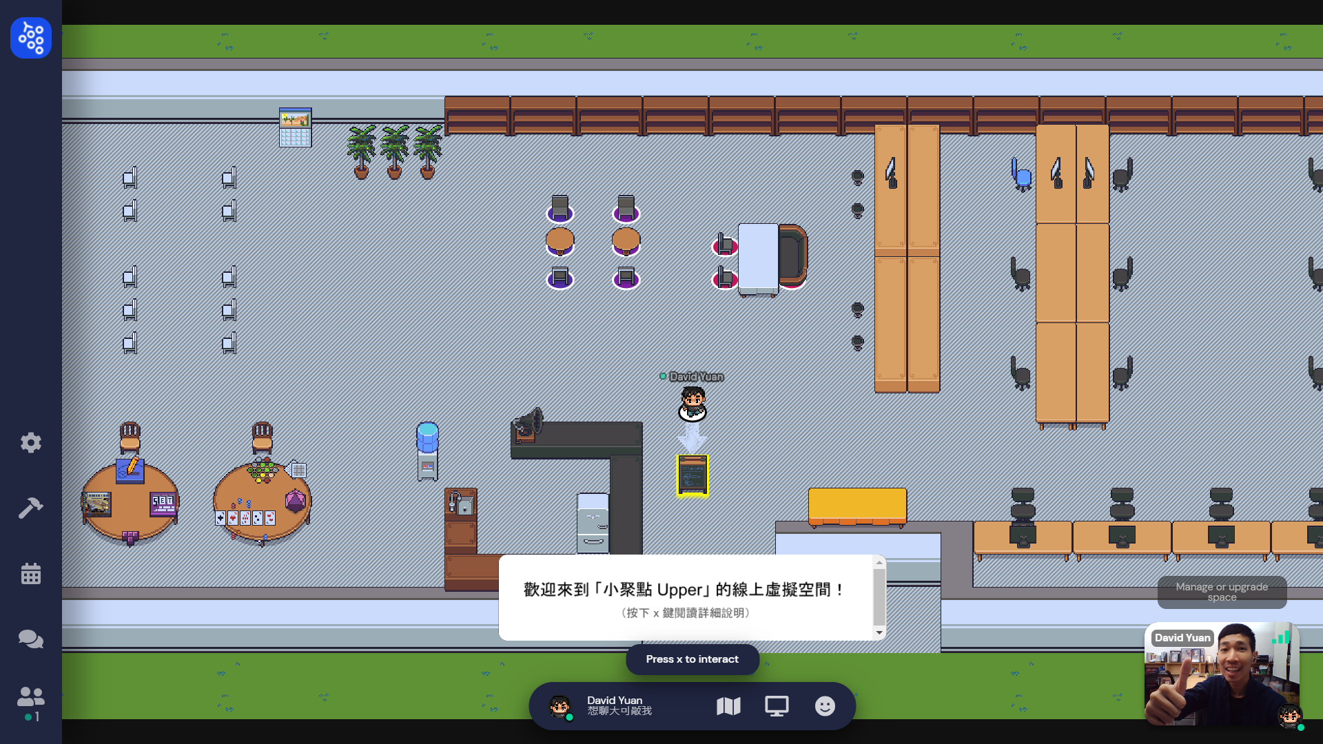 這場線上活動的語音(或視訊)方面會使用「Gather Town」虛擬空間來進行,我們將會在根據「實際的小聚點共享空間」所打造線上虛擬空間內,來讓大家一起參與這次的活動,希望提供參加者很好的代入感跟臨場感。