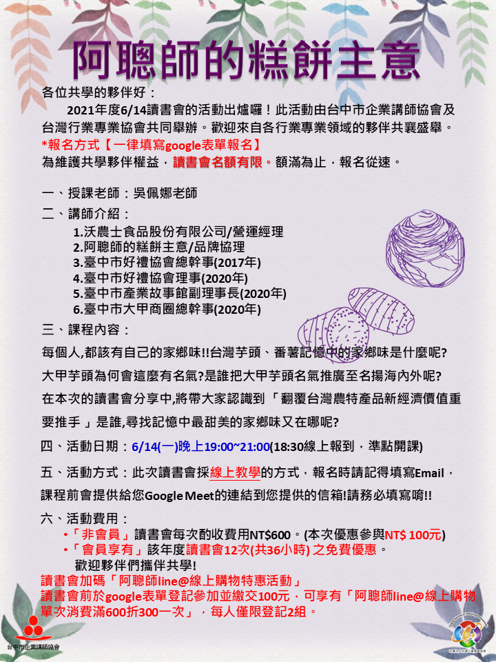 2021.06.14<阿聰師的糕餅主意>讀書會