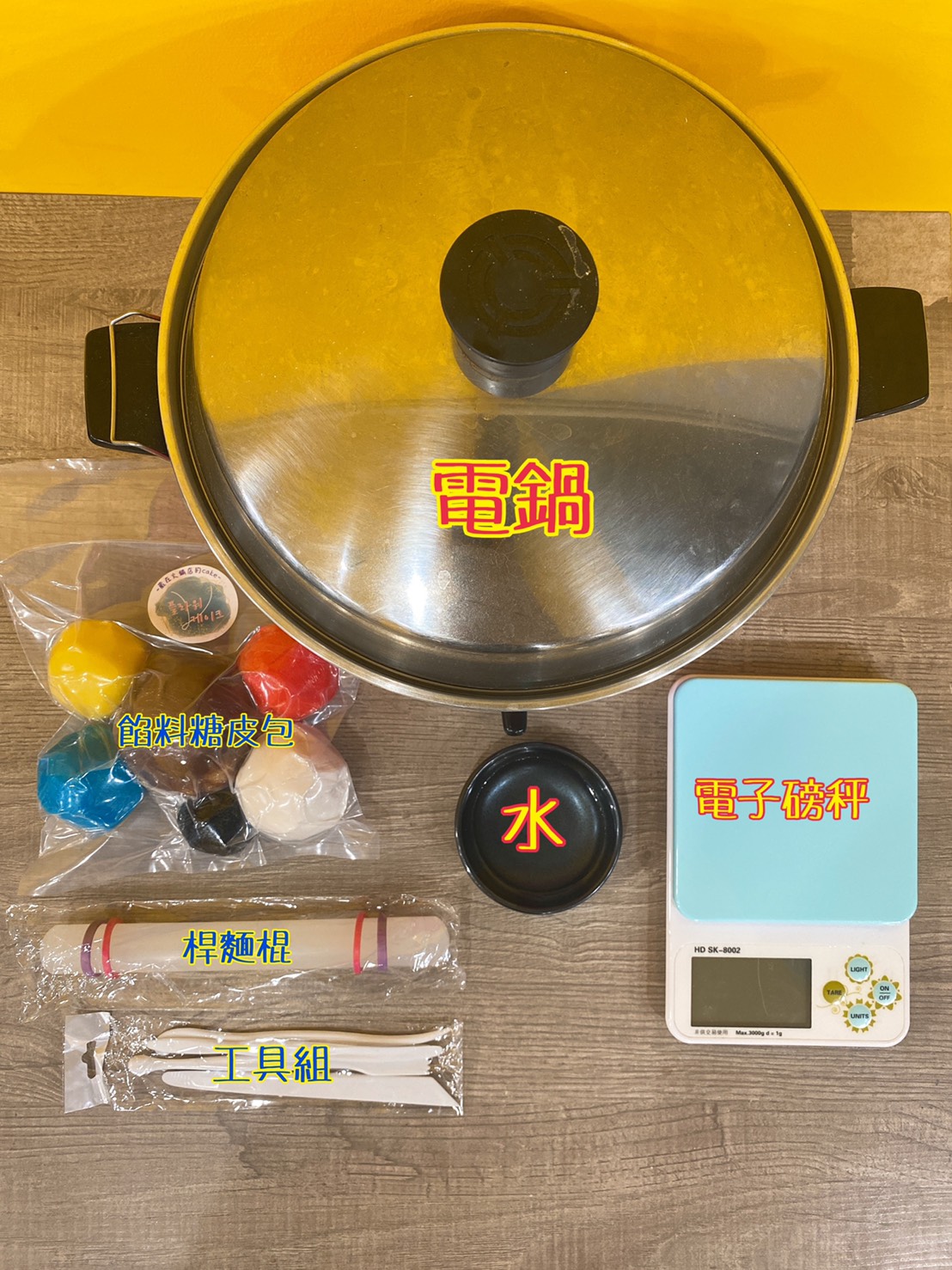 - 上課事前準備器材:電鍋、保鮮盒、些許食用水、食物電子秤