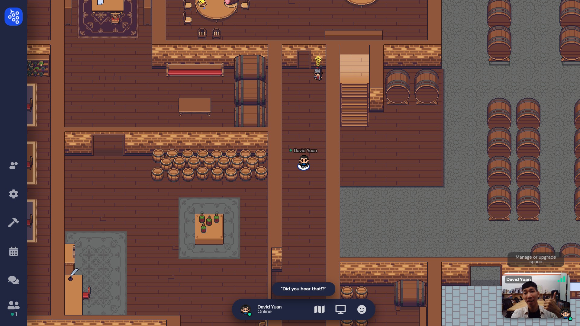 除此之外,參與者說話的「音量大小」,也會隨著畫面上的距離而有不同,假如你想聽聽茶水間的同事正在聊什麼八卦,只有走過去才聽得到哦!