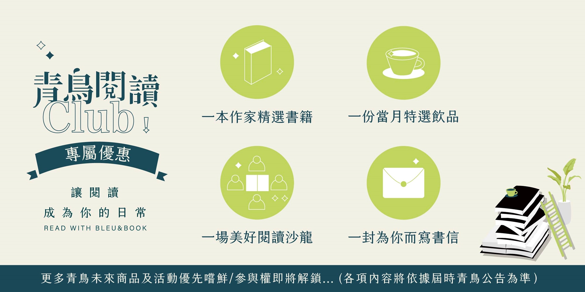 誠摯邀請各位加入青鳥閱讀CLUB,每個月我們將與各領域作家及各方藝文專業人士合作,從選書到策展、從講座到對話,並佐以最合時節的精緻風味飲品,讓青鳥陪著你以最老派的態度閱讀,用最自由的心靈體驗全新的閱讀感受。