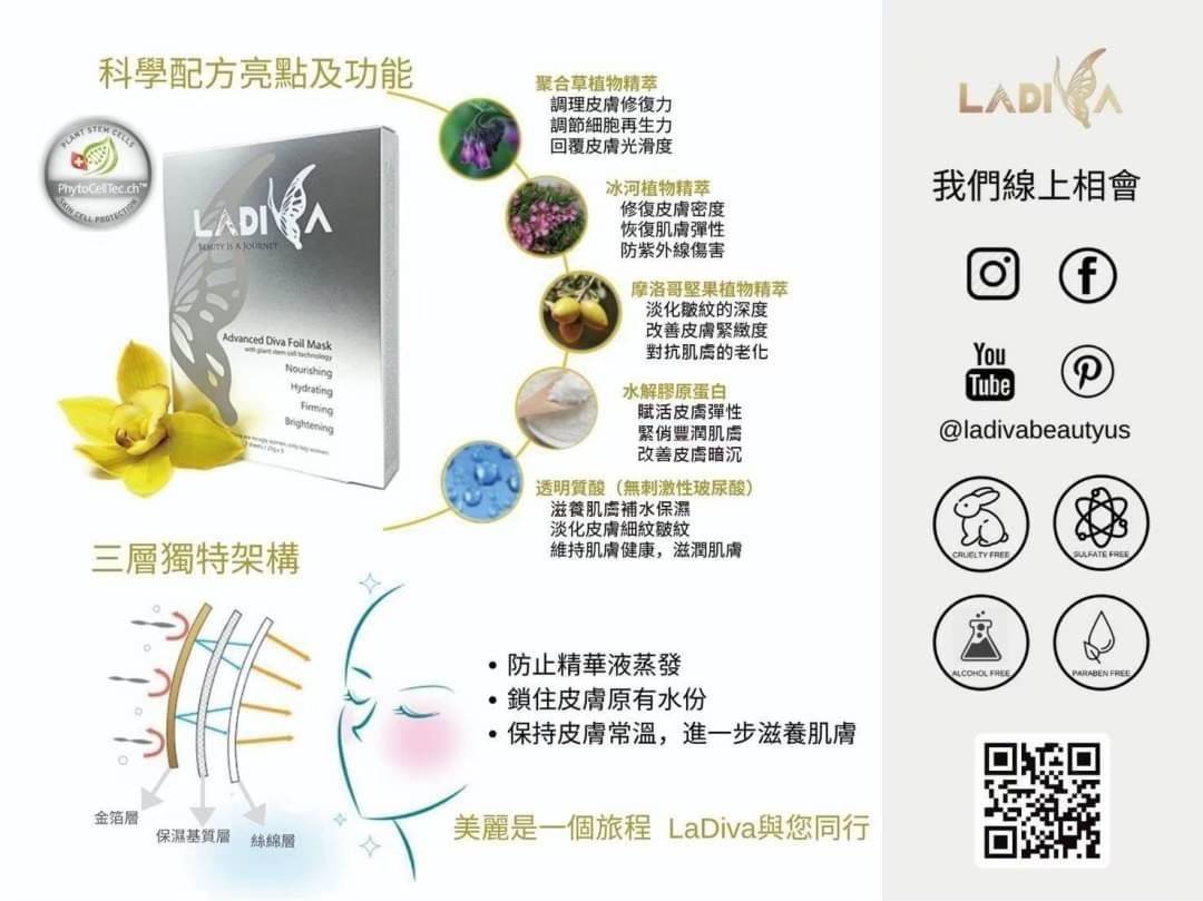 報名成功享 (1) 價值 $250 《LADIVA 植物精萃金鉑面膜》乙片