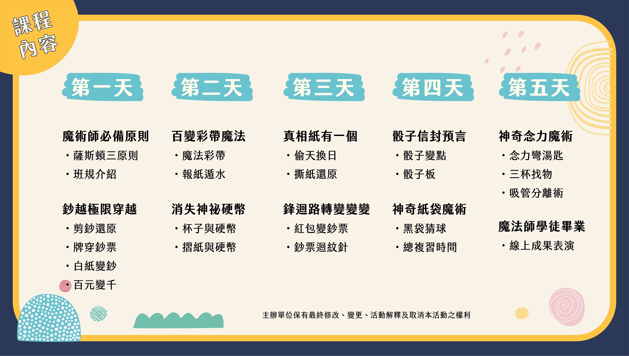 ※ 上課日期 ⠀ 第一梯2021年07月19日 (一)至 2021年07月23日 (五)