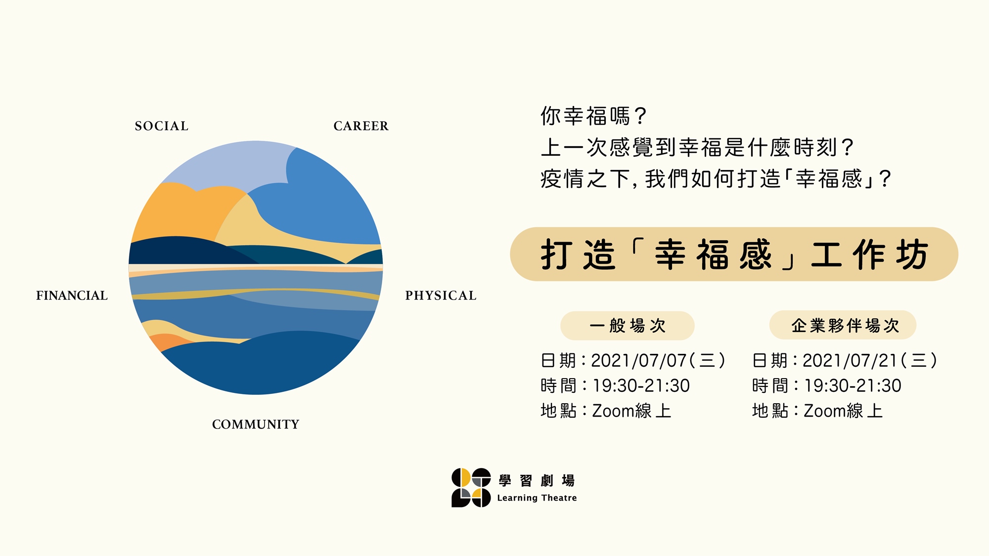 這個工作坊我們將參考蓋洛普的幸福感理論,透過反思自己的現狀、想像未來願景、定義未來與現狀的差距、產出行動方案,著手打造專屬於自己的幸福感。