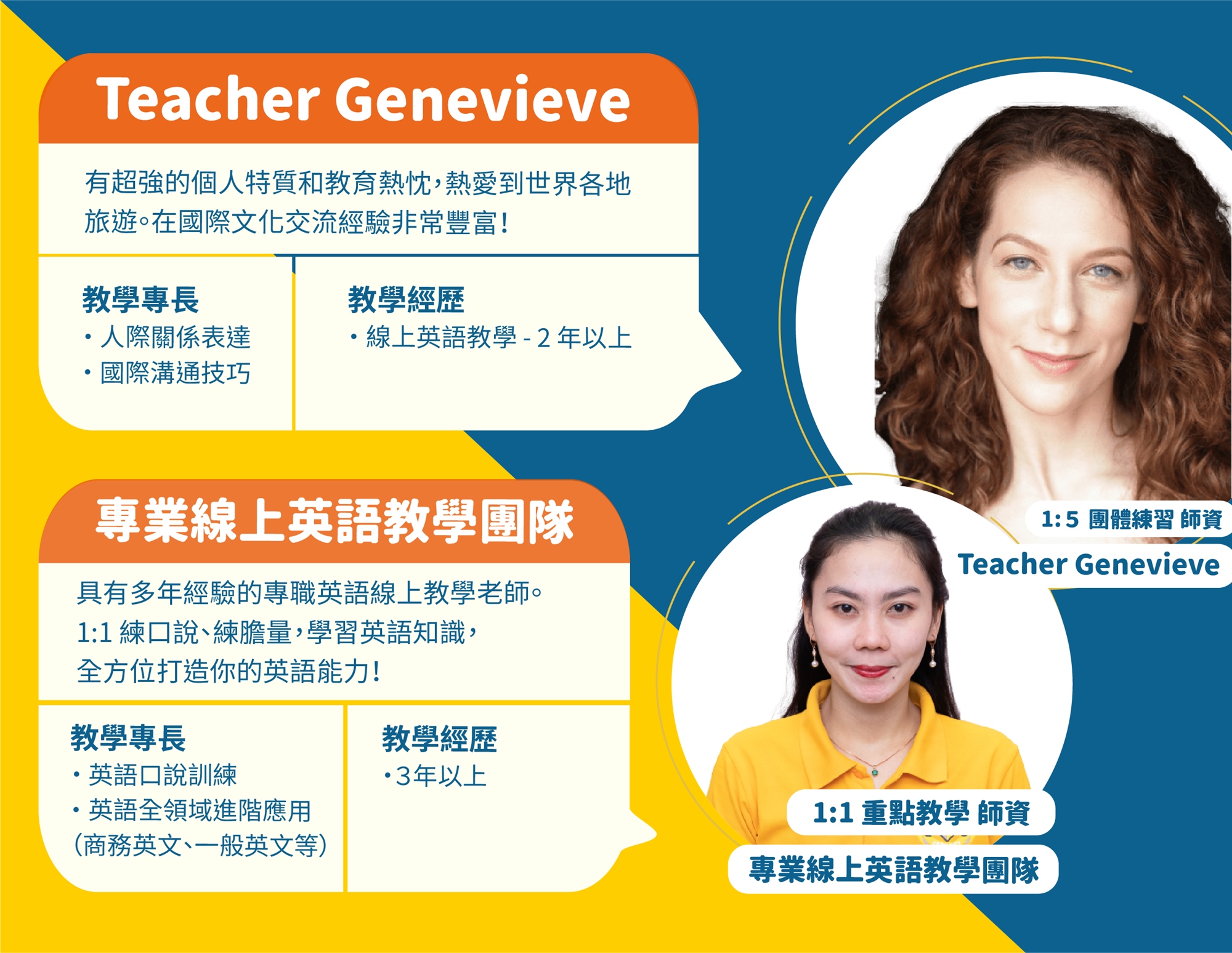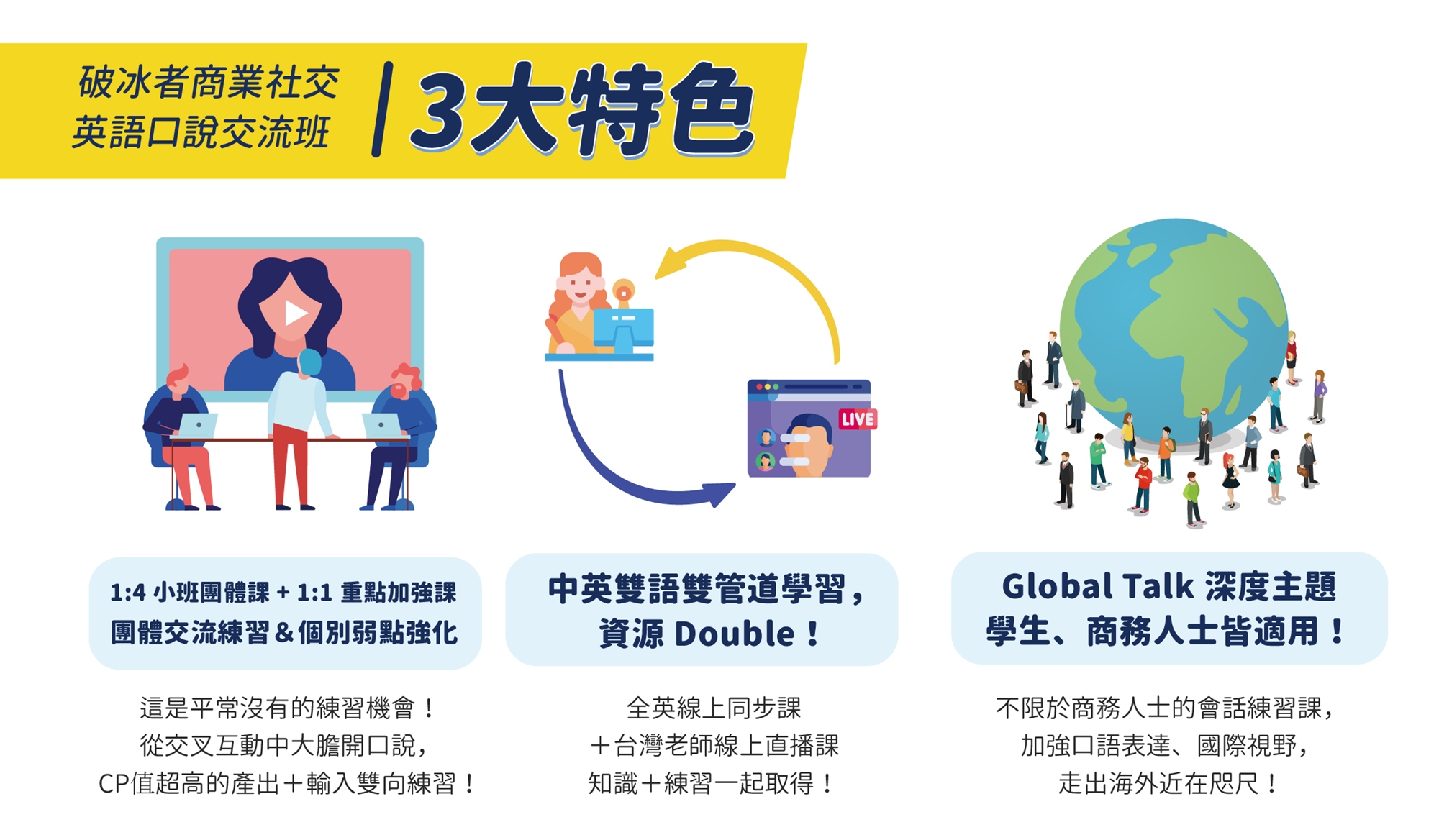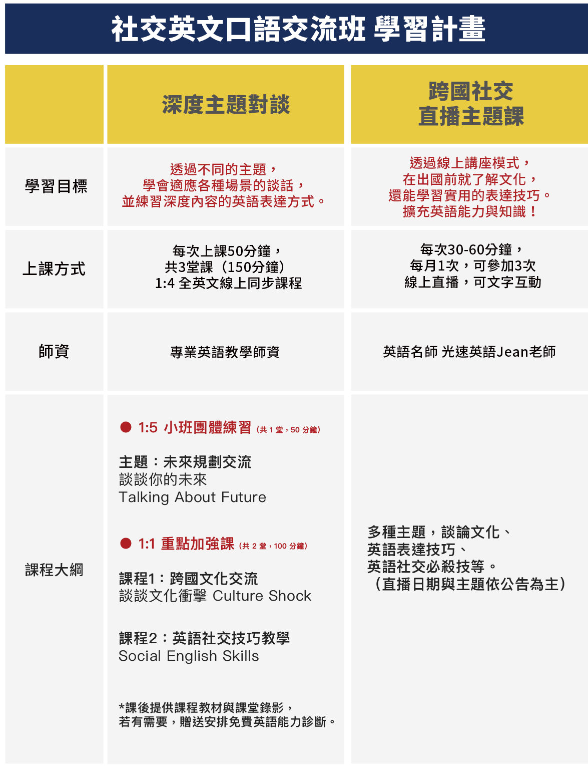 - 1:1 重點加強:線上真人課程,使用Zoom軟體上課