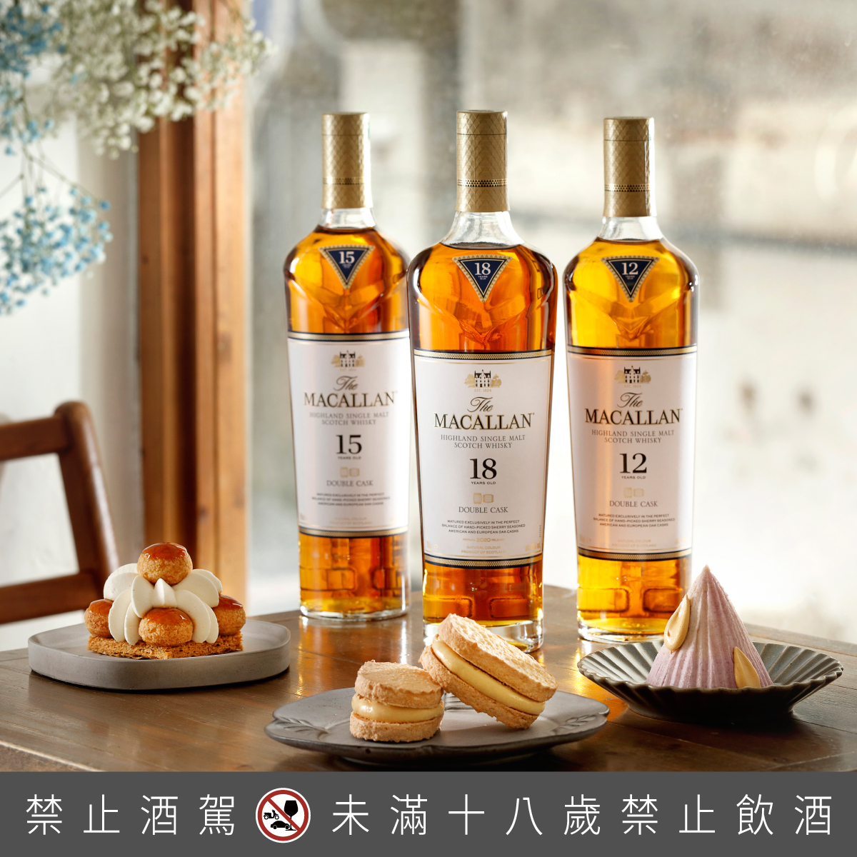 麥卡倫雙雪莉桶系列不僅具有白橡木雪莉桶的優雅,更透過紅橡木雪莉桶的特質,獲得了強而有力的酒體,兼備著豐實厚度也擁有寬廣且平衡的餘裕,讓搭配甜點時,擁有更多空間。因此,不論是台式、西式、法式還是日式甜點,都能在麥卡倫雙雪莉風味中找到最美妙的平衡。