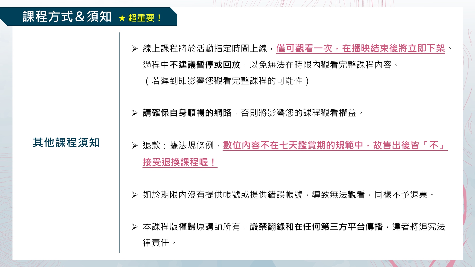 ✓ 邀請學員把握課程時間,追上業界脈動!