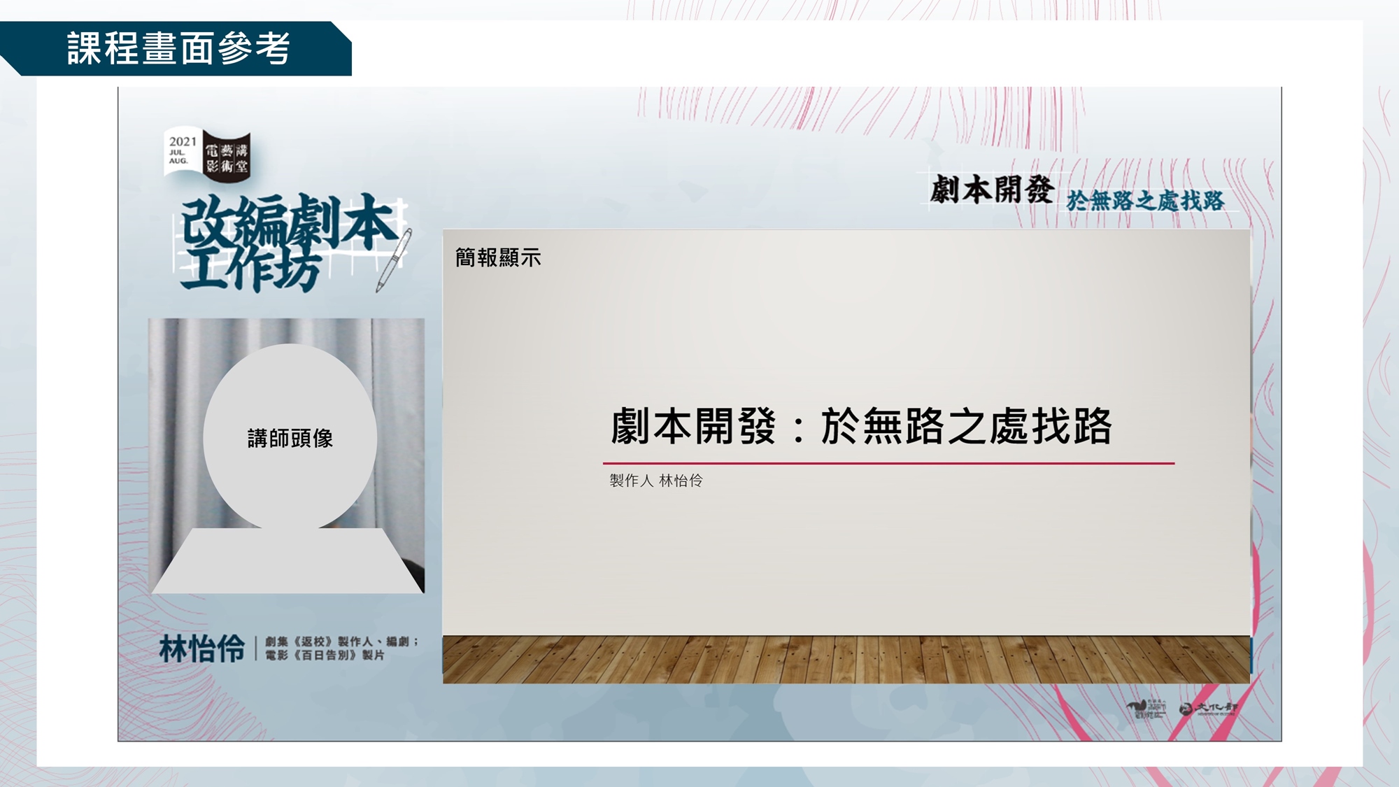 ✓ 「改編劇本工作坊」系列課程另有:7月【劇本開發:林怡伶】(點擊前往),剖析製作人在劇本開發如何綜觀全局找到兼具創意與現實考量的故事觀點!