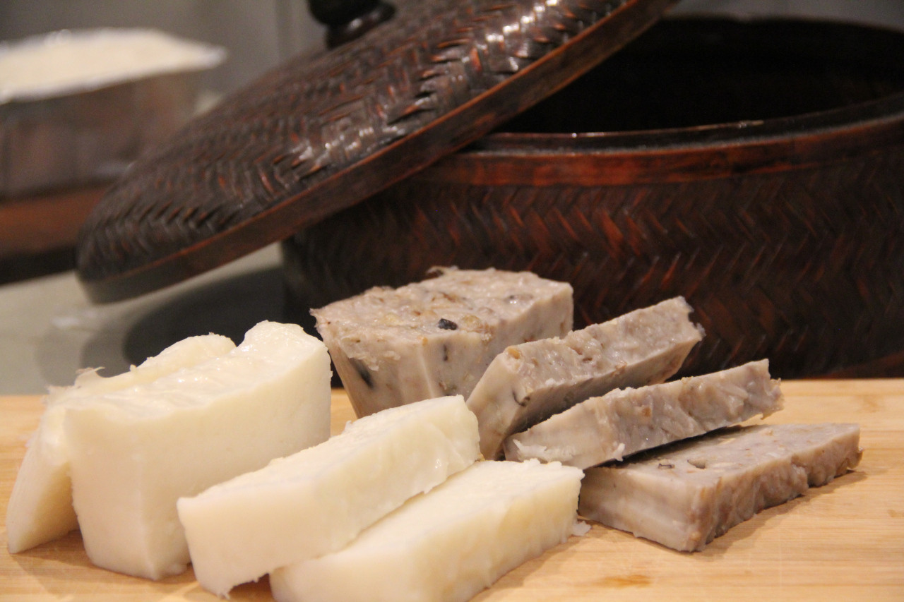 蘿蔔糕課程結束成品有1條蘿蔔糕+1條芋頭糕
