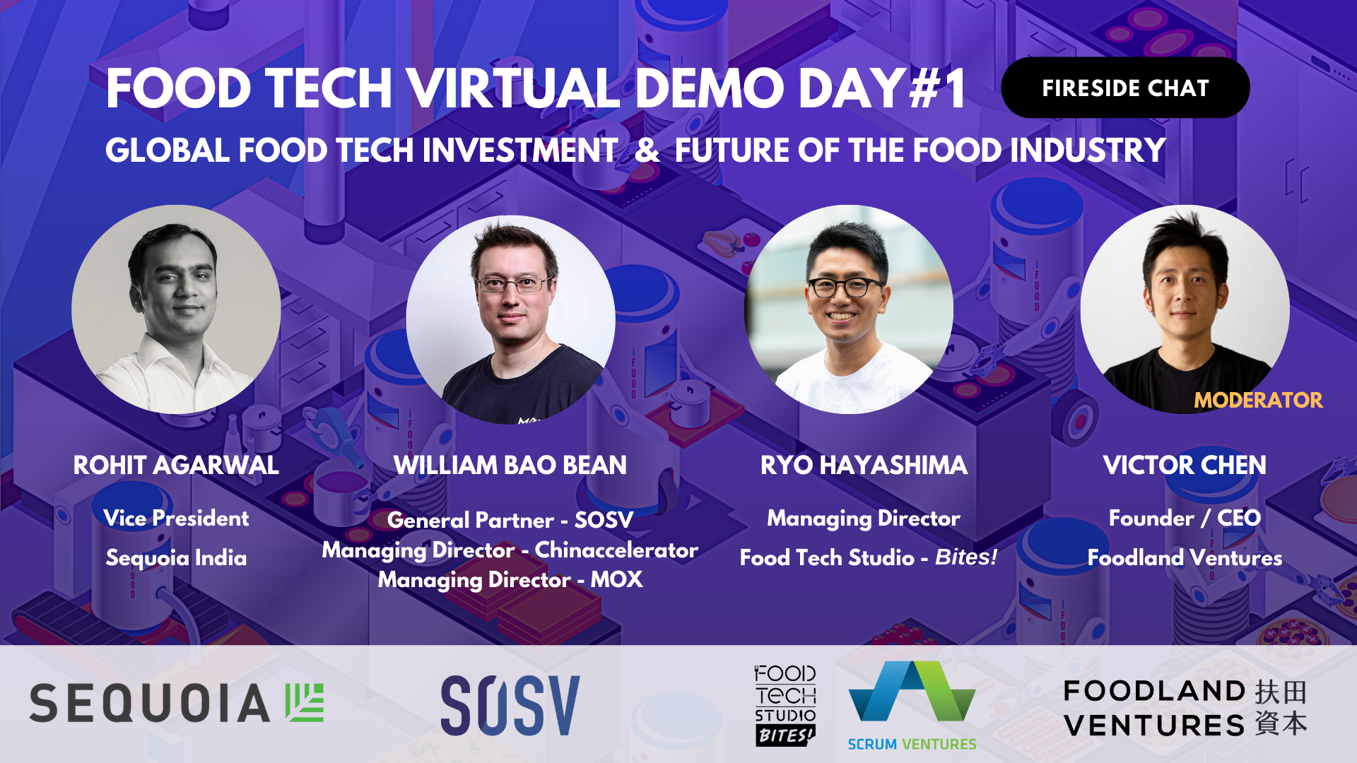 Also, we'll be joined by world-class VCs from Sequoia India, SOSV, and Scrum Ventures / Food Tech Studio – Bites! to share their valuable insights on the topic of Global Food Tech Investment & Future of the Food Industry! Don't miss out on the top-tier startups' pitches and world-class fireside chat panel!