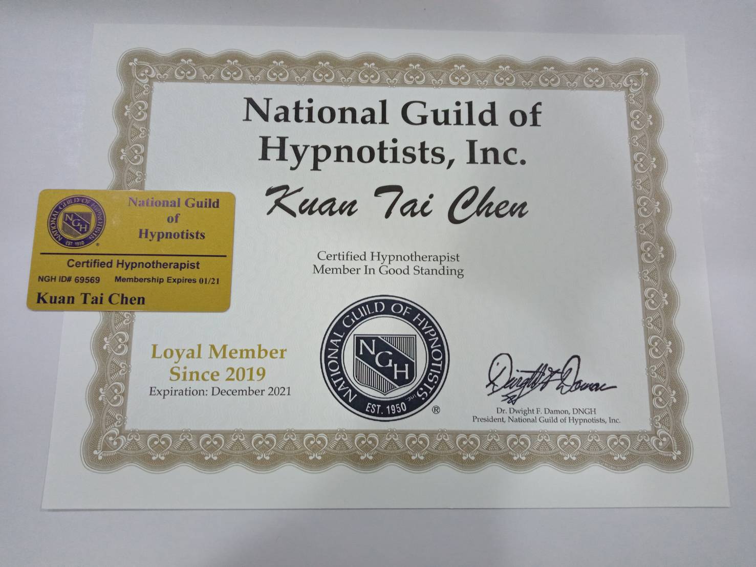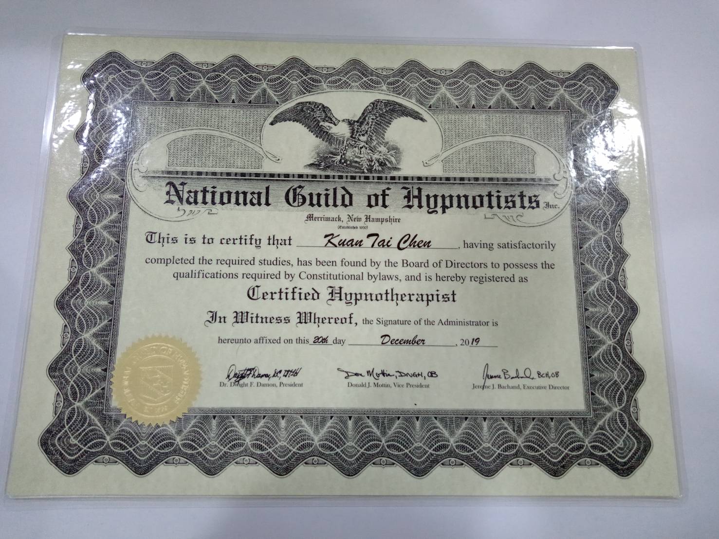 陳寬泰老師-NGH催眠師證照及 NGH會員證書