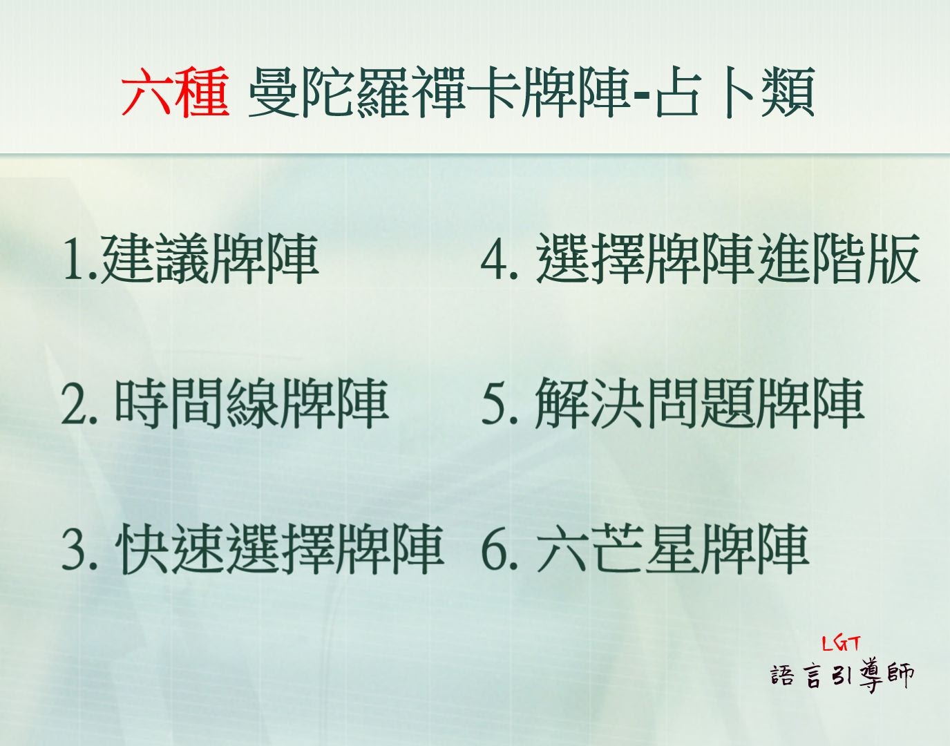 3. LGT曼陀羅禪卡占卜師課程 可終身免費複習