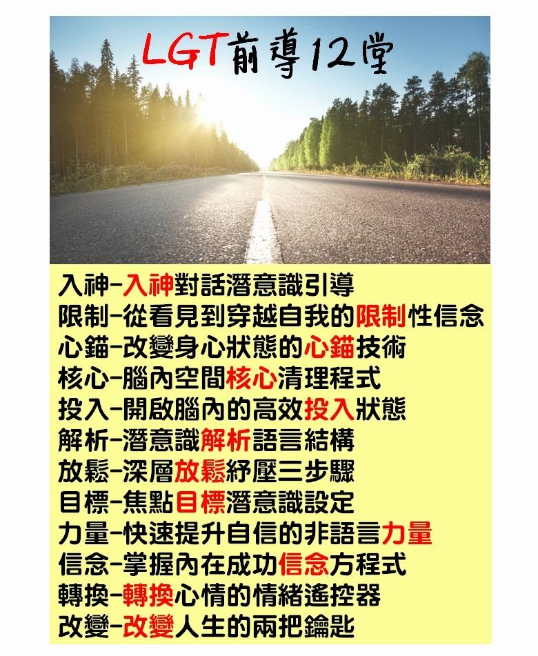 1. 額外贈送12堂不同主題 LGT前導 (每月一堂 通常會安排在週二晚上1930-2100)