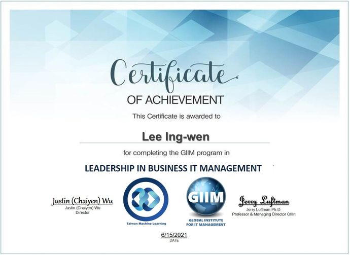 候選人或參與者,全程參與,完成人工智慧專案並通過測驗合格,可獲得美國GIIM認證世界人工智慧領導專家.