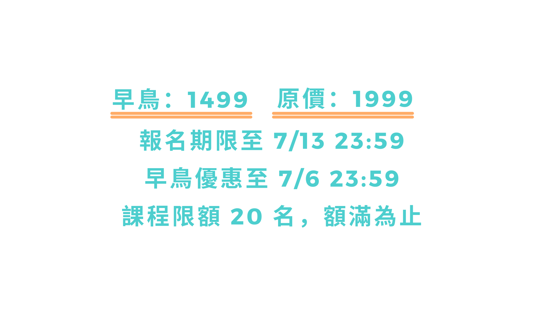 - 本課程將於線上授課,恕不開放授課時錄影或補課喔。