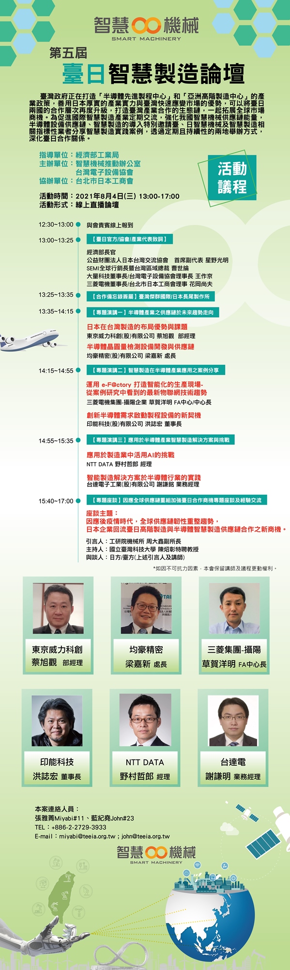 第五屆臺日智慧製造論壇(免費線上國際論壇)