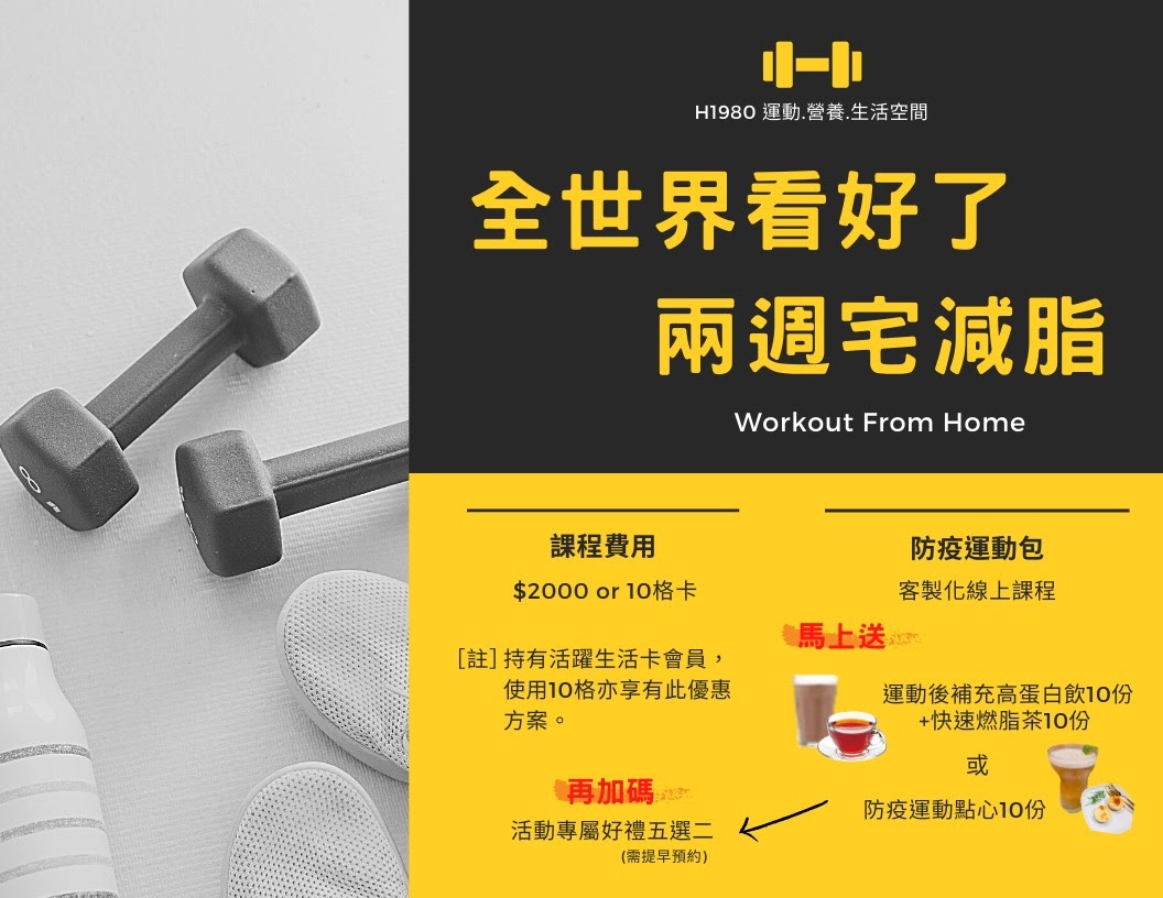 全世界看好了,兩週宅減脂🔥 客製化線上課程,讓你在家抗疫不長寂寞不長肉!