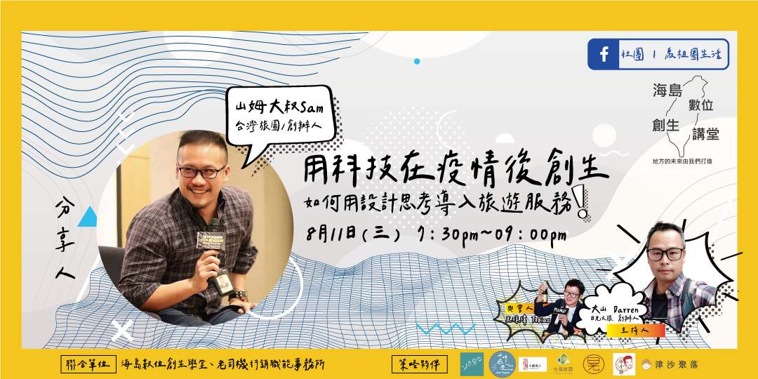 8/11【線上】海島數位創生學堂:用科技在疫情後創生!如何用設計思考導入旅遊服務~ (台灣旅圖/山姆大叔Sam/創辦人)
