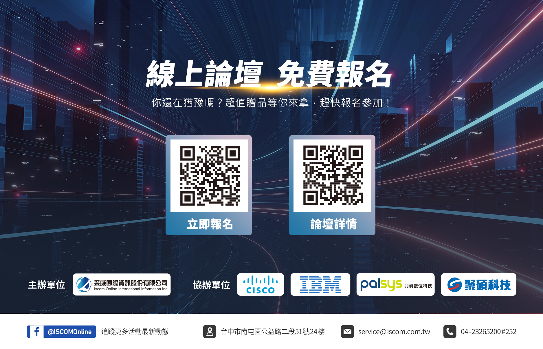 - 對論壇活動有任何疑問,歡迎致電04-23265200#252或寄送郵件至客服信箱service@iscom.com.tw。