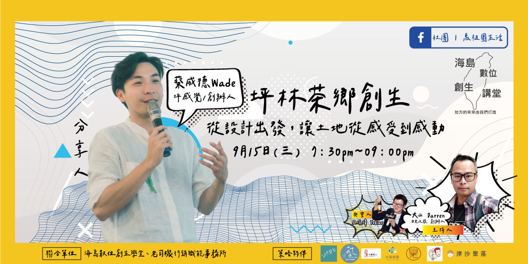 9/15【線上】海島數位創生學堂:坪林茶鄉創生!從設計出發,讓土地從感受到感動~ (坪感覺/蔡威德 Wade/創辦人)