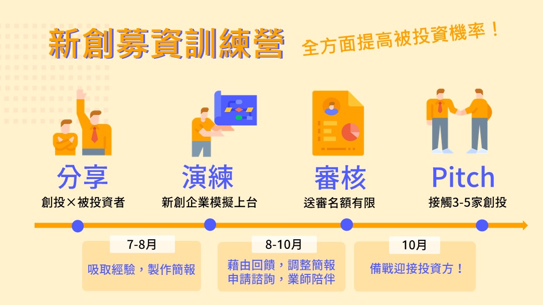 提出新創企業提出募資計畫的關鍵項目、簡報架構建議以外,