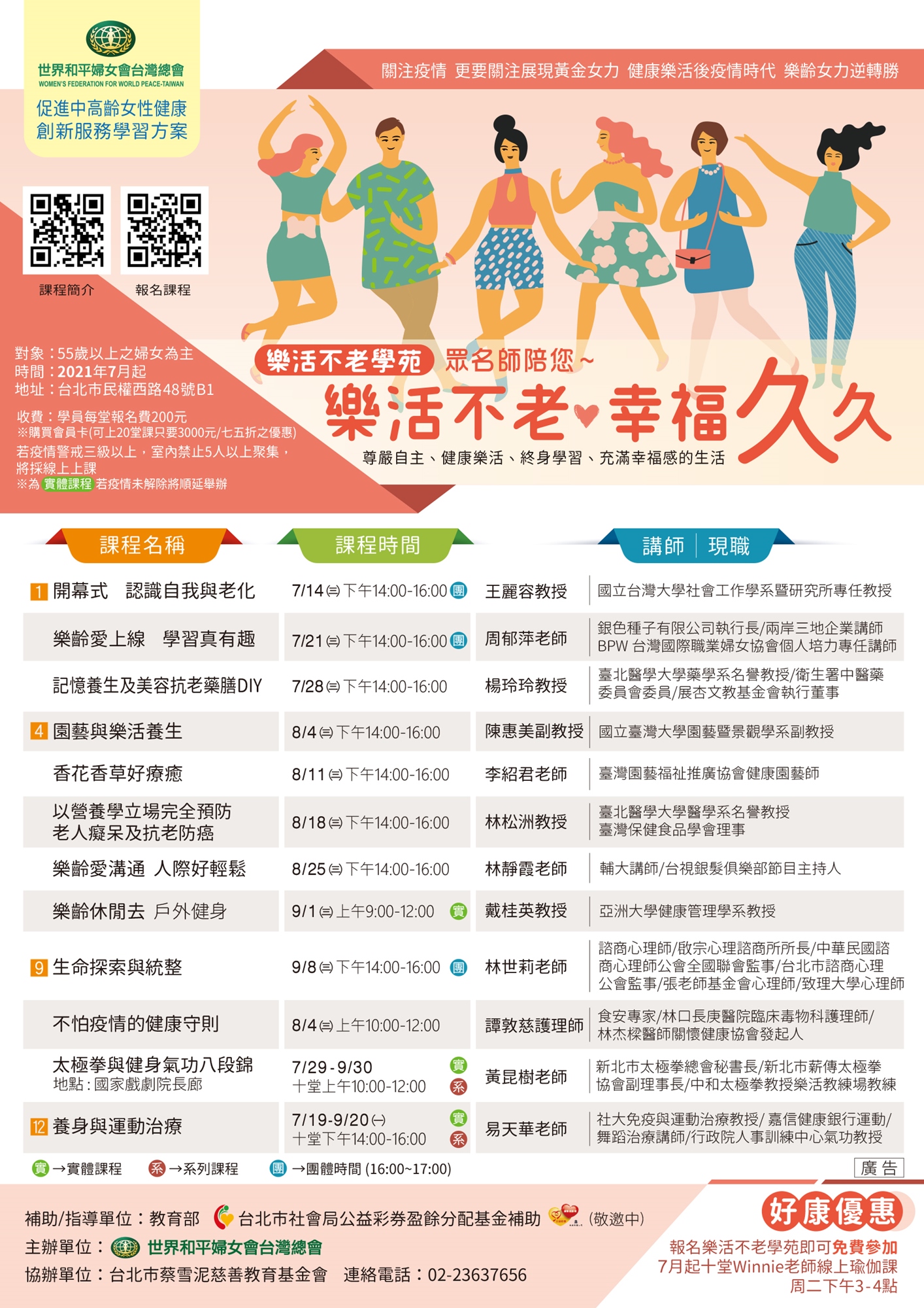 收費:7/14為免費課程 其他課程學員每堂報名費200元) 參加者 本會開課程收費收據證明(非發票)