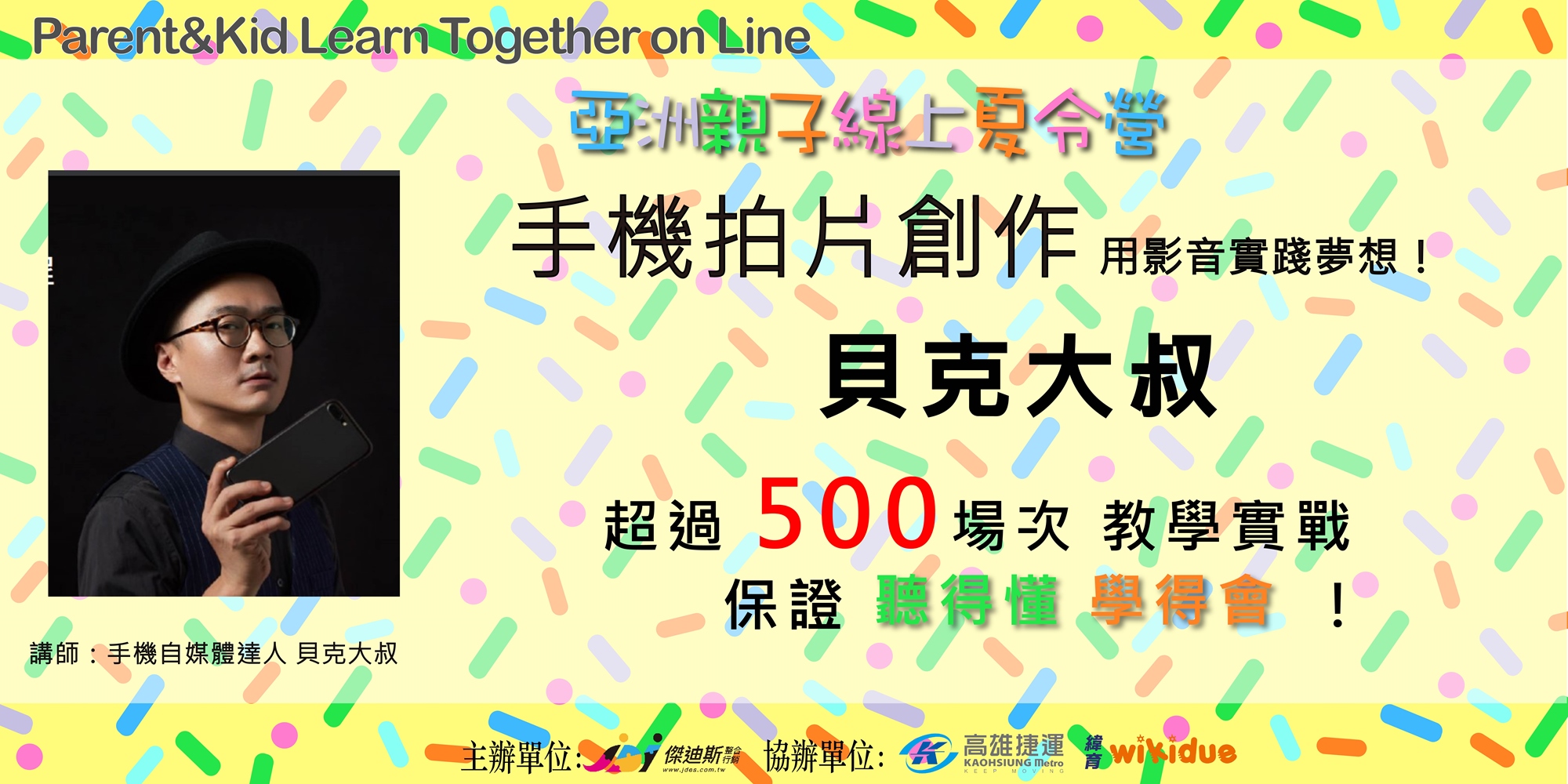 貝克大叔致力於手機拍片教學,本身是一位導演,有超過500場國內外大小企業、團體,不同對象手機拍片教學的豐富經驗,潛移默化幽默的上課方式,保證親子都聽得懂、而且學得會!