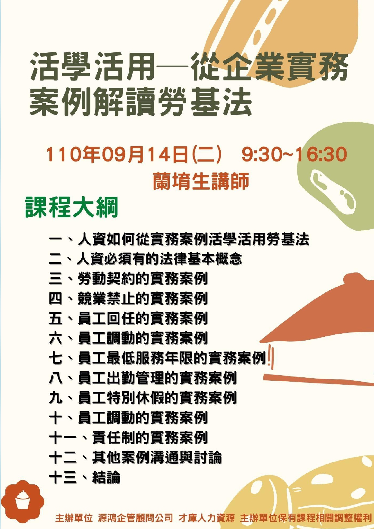 【上課時間】:110/09/14(二) AM09:30-PM16:30 (共計:6小時)