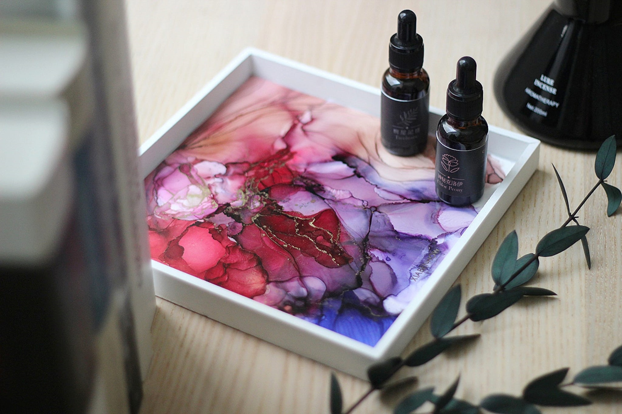 在家放鬆心情,在紙上隨意作畫,就可以製作出高質感的酒精畫喔。