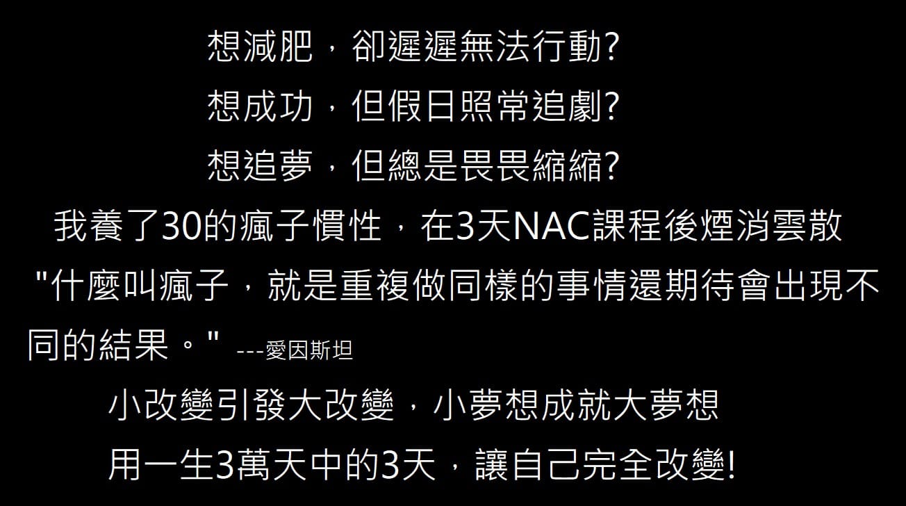 在完全改變三天中!你將親自體驗到: