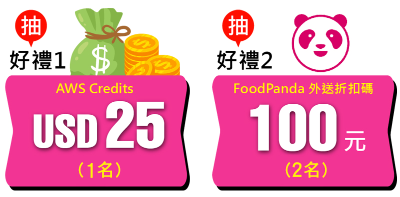 - AWS Credit Code 一名(單價USD25,凡使用AWS服務者即可使用)