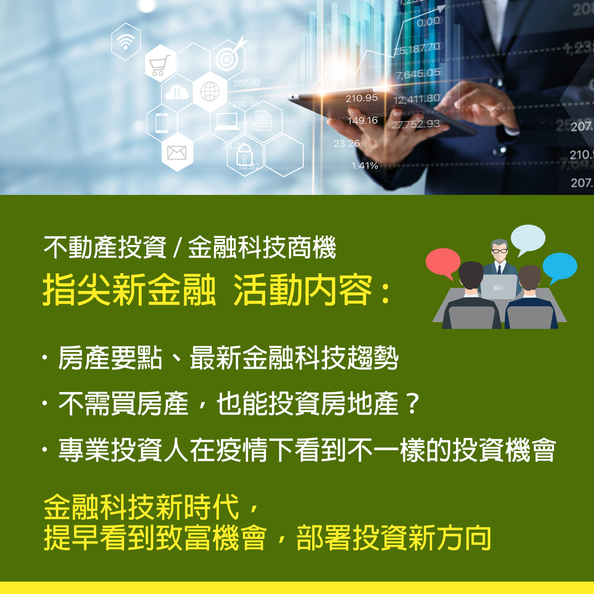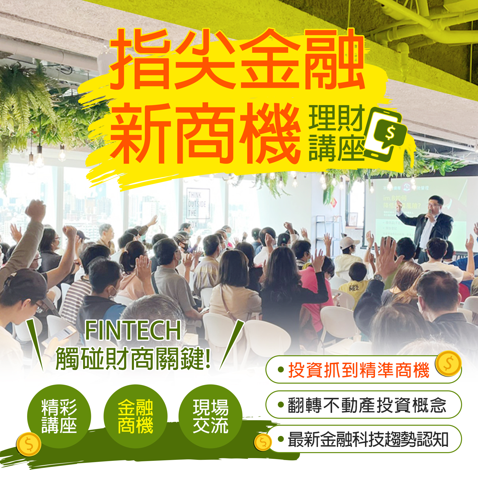 聆聽講師金融業22年,16年房產豐富經驗與您分享最新金融科技,提前佈署投資機會!