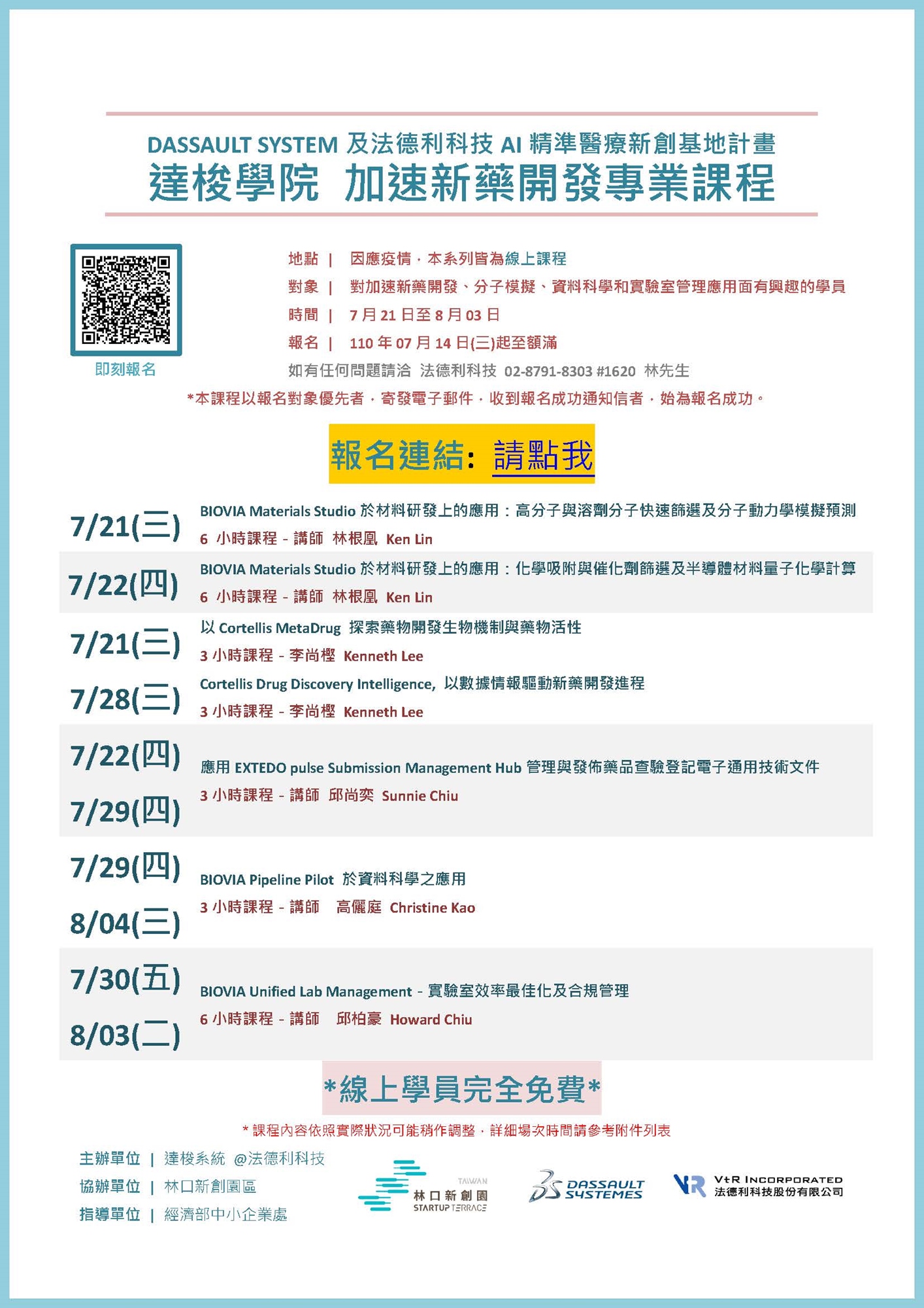 DASSAULT SYSTEM及法德利科技AI精準醫療新創基地計畫 達梭學院 加速新藥開發專業課程