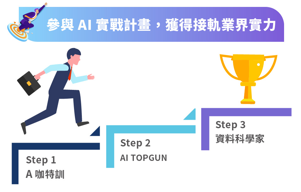 Cupoy 規劃了一系列的實力提升計畫,由馬拉松為你打造紮實的理論基礎,接著A咖訓練營會手把手帶你完成 AI 專案培養實作能力。最後 Cupoy 更為你準備與業界接軌的實戰計畫,AI專家會帶著學員一起組隊解決企業實際問題,計畫完成即可獲得企業提供之證明,你將能強化面試籌碼並且朝資料科學家更進一步。